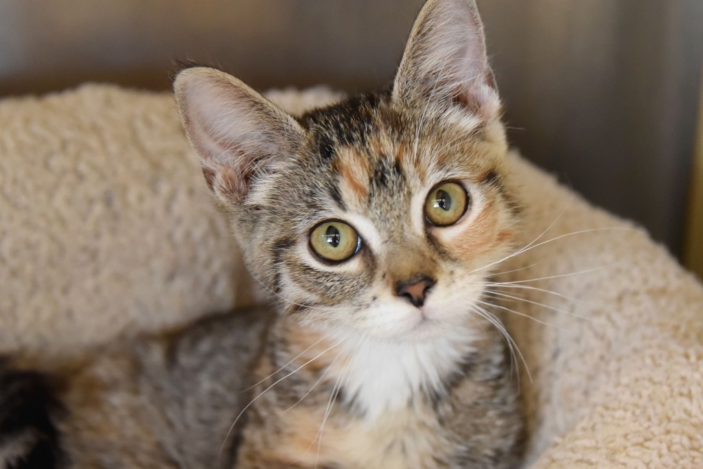 Arriving with her brother and sister, St. Adella loves to snuggle on her cat bed with her sibings. She is a still skittish, but we are working with her and she is gradually relaxing. Once St. Adella can be at home with her new family she will come into her own as we are watching her grow friendlier and friendlier. If you have the love to give, this sweet kitty might be a perfect matchIf you would be interested in giving me a furever home, please contact The Humane Society of Adams County, Inc. at (937) 544-8585 to set up a time to come meet me and fill out an adoption application!