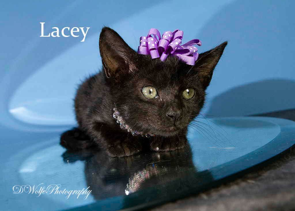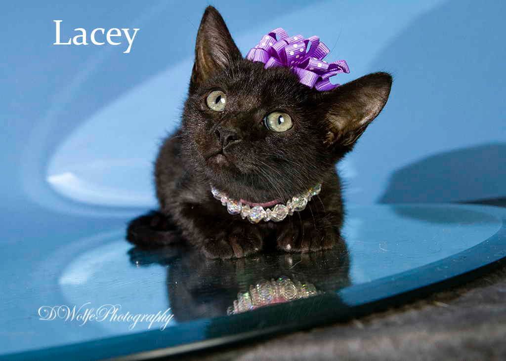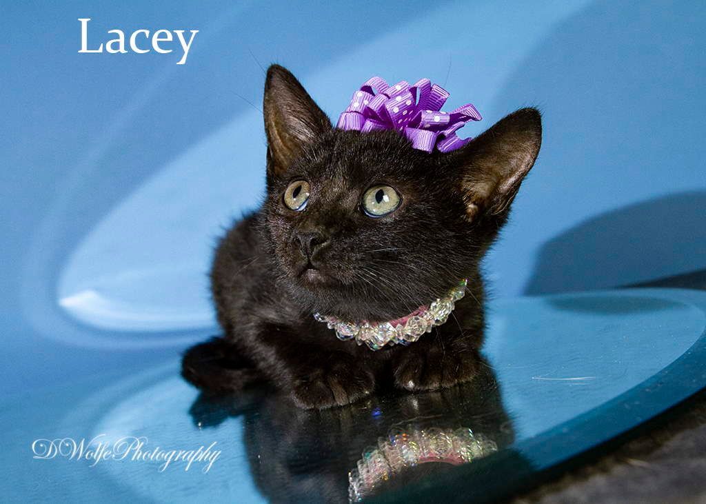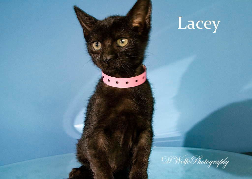 Hi my name is Lacey and when my sister Macy & Tracie were born our mother was not able to care for us so we were taken to this nice lady who bottle fed & cared for us until we were old enough to eat on our own and find forever homes. We are a beautiful black kittens and love to play and snuggle with each other. We will remain with our foster mom until we are adopted. If you have any questions please contact LaMoine at 402-366-0533. If you would like to adopt me and/or my sisters please complete and submit an adoption application at yorkadoptapet.com. Well be waiting to see you!!
