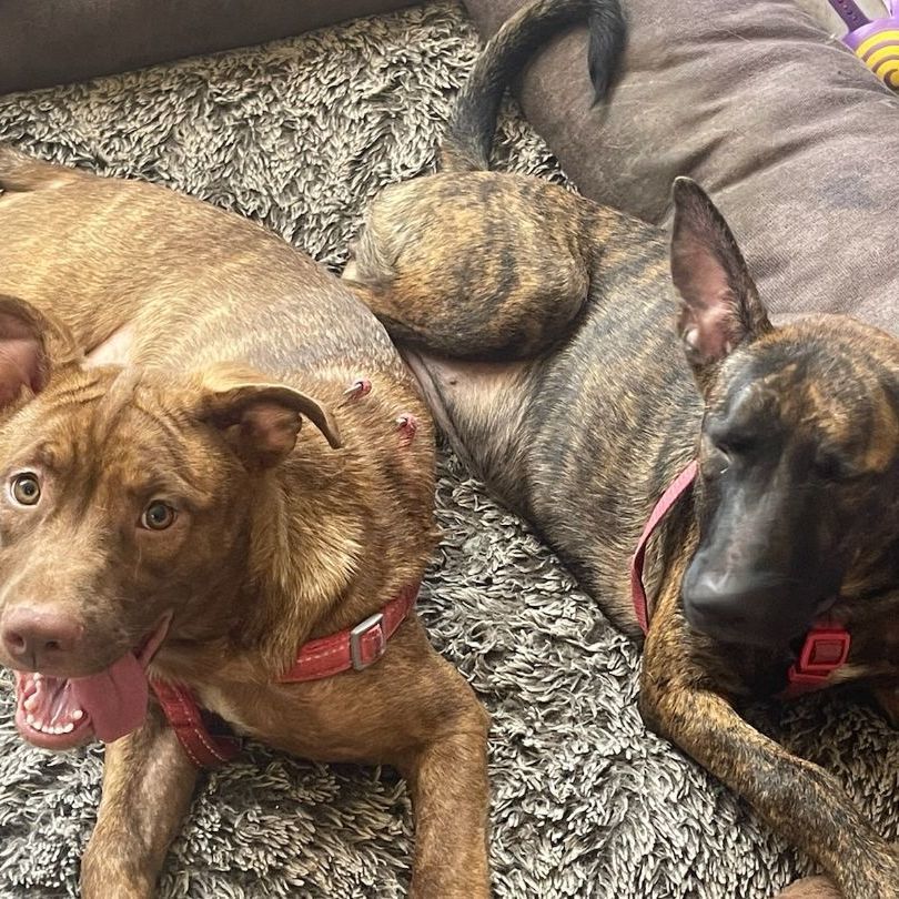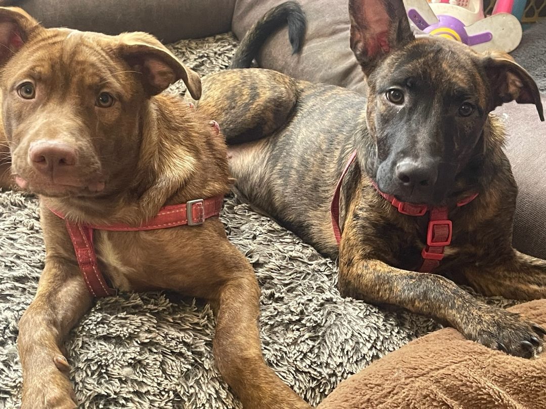 These 2 beautiful sisters are now available for adoption they are sweet wonderful little girls they are good with kids good with other dogs their Foster mom has been working with them on training they know all the basic commands they are very sweet well behaved mannered Pups they are pottypad trained they are about 6 months old we also have their 2 brothers that are also available their daddy was a red nose and their mom was a yellow shepherd they are sweet if you would like to meet them please reach out to us there located in Anaheim their brothers are on riverside we will also be posting a picture of their brothers.