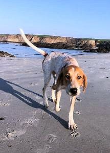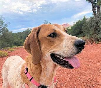 Hildy is a 1 year old Redtick girl waiting in central California for a new home. She is very social and loves people and dogs, but NO cats, please. Hildy is an athletic and active girl and would do best with a 6 fence. She loves to cuddle and is very affectionate; she can be timid at first but will become playful as she becomes more comfortable. Hildy does pretty well on leash and is continuing to learn. She loves her fruits and veggies. Hildy can be vocal when excited but is mostly quiet. She is in good weight at 65 lbs.