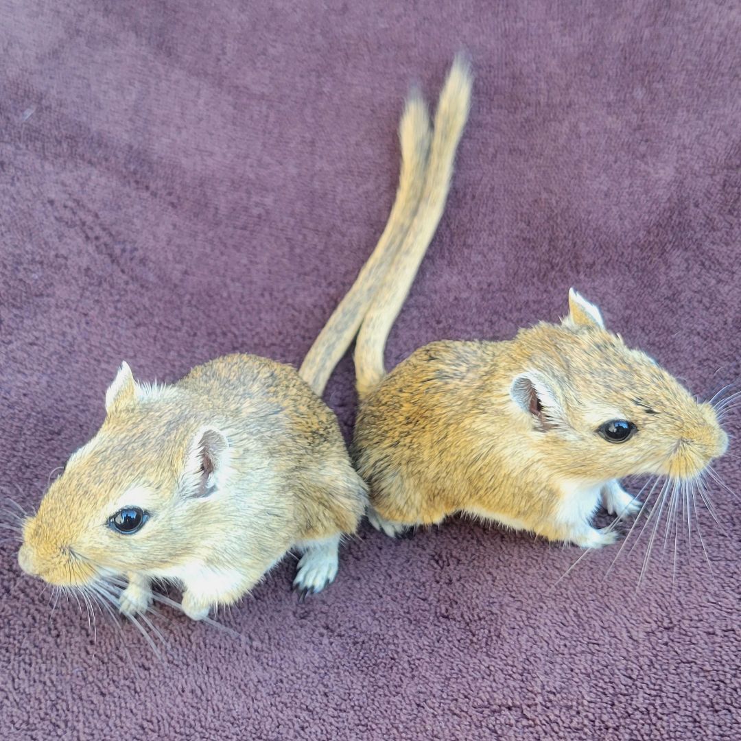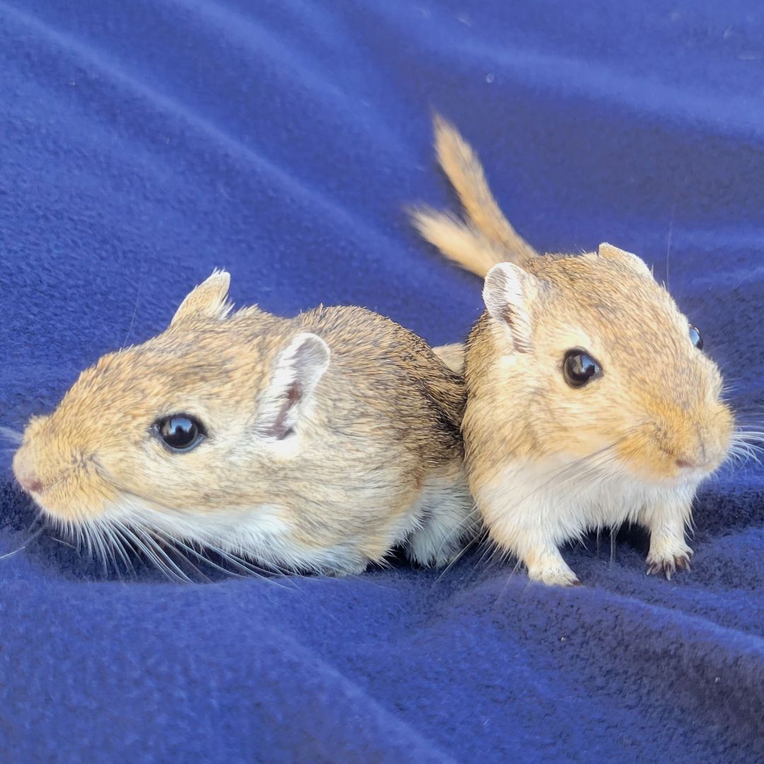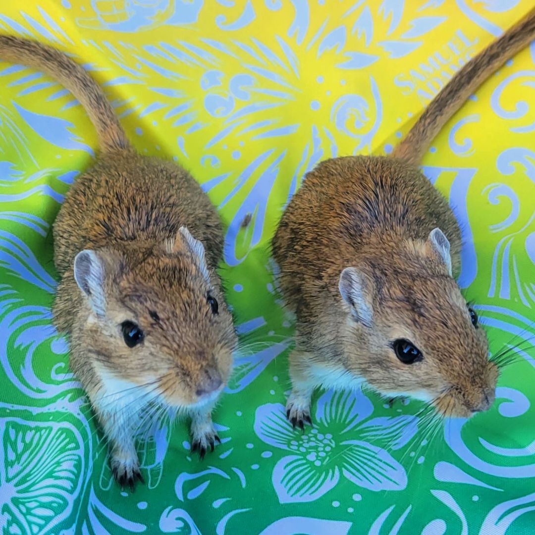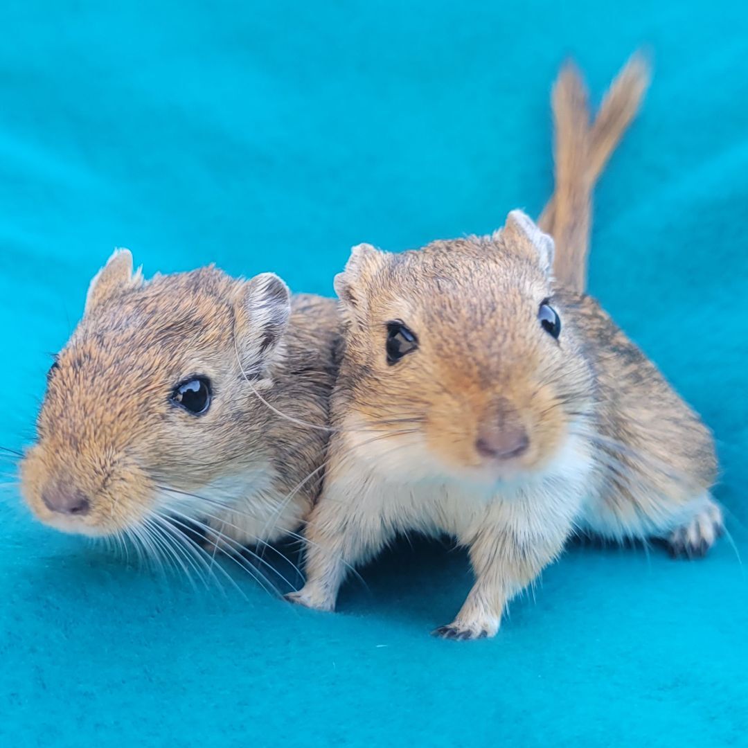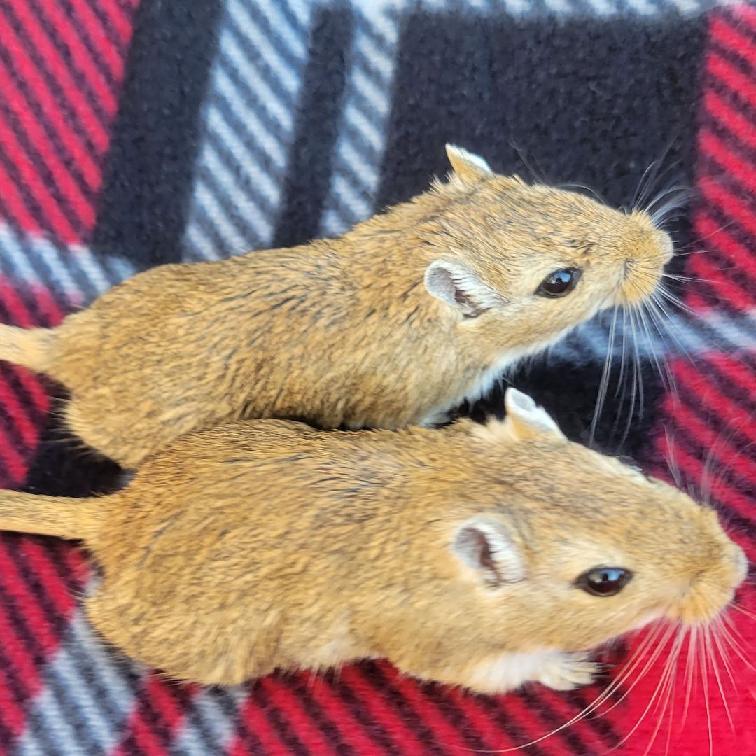 AVAILABLE FOR ADOPTION - Mango & Papaya are two very sweet female sisters. Gerbils are very social, so it is important they have each other and stay together. Both are believed to be around 4 months old. They came in as an owner surrender, originally bought for a young child who lost interest. Mango & Papaya are both agoutis, but Mango is a little bigger than Papaya. Gerbils are very active and are often awake during the day. They love anything cardboard, deep bedding, taking regular sand baths and running in their wheel. Papaya and Mango are very curious and love to know what you are doing. While gerbils can live in bin style cages 100qrt or larger, we generally prefer 40-gallon aquariums. At the moment the rescue has two 110 qrt bin style cages with accessories that were made for the rescue (see last photo). The gerbils currently live in a similar set up. Only asking $30 for the set up. Like all gerbils, Mango & Papaya are pretty fast, but we have not had a problem handling them. Mango & Papaya are located in Macungie, PA. Gerbils can make cute and fun little pets, but as any pets do, they require some special care. If you are interested in adopting, please check out the link below before submitting an application to make sure you are informed about the care they need. The adoption fee for Manago & Papaya is $10 for the pair. Please contact us with any questions! https://www.smallangelsrescue.org/angels/gerbils/ Our adoption application can be found here - https://form.jotform.com/200364365822048