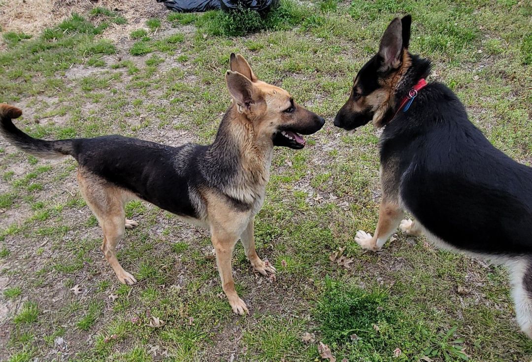 German Shepherd Alert! We all love to watch the German Shepherds as they leap with the long body stretch, showing grace and agility. The ability to protect with confidence and intimidation like no other dog. Meet Roo. She is none of the above. This girl lands with a thud on all four feet when she jumps. She does attempt to appear confident and intimidating but usually falls short of the task because she is scared of the unknown. Make no mistake, this girl will run to her person and peek from behind if she is scared. She is the equivalent of Miss Congeniality, a little clumsy and lacking in grace. Roo has earned the name Llama Mama due to her long neck that stretches when something peaks her interest. . Her leash skills need improvement and most times she is a train wreck. I have only fostered 2 shepherds with these unique qualities. And both have been the most entertaining dogs ever. Roo is a big puppy, learning new lessons in life. Roo plays best with medium to large males with the same over the top energy. She loves toys and will empty the toy box of every item. If you are looking for your spirit animal and this comical girl is it, please apply. Never a dull moment with this wild child.