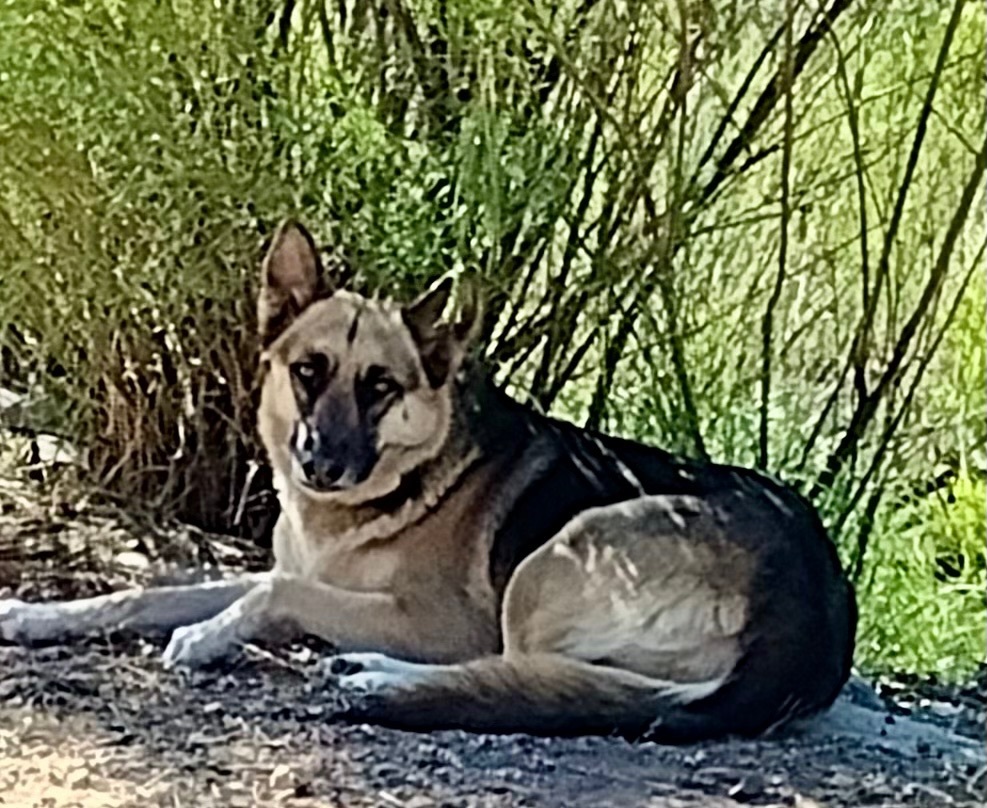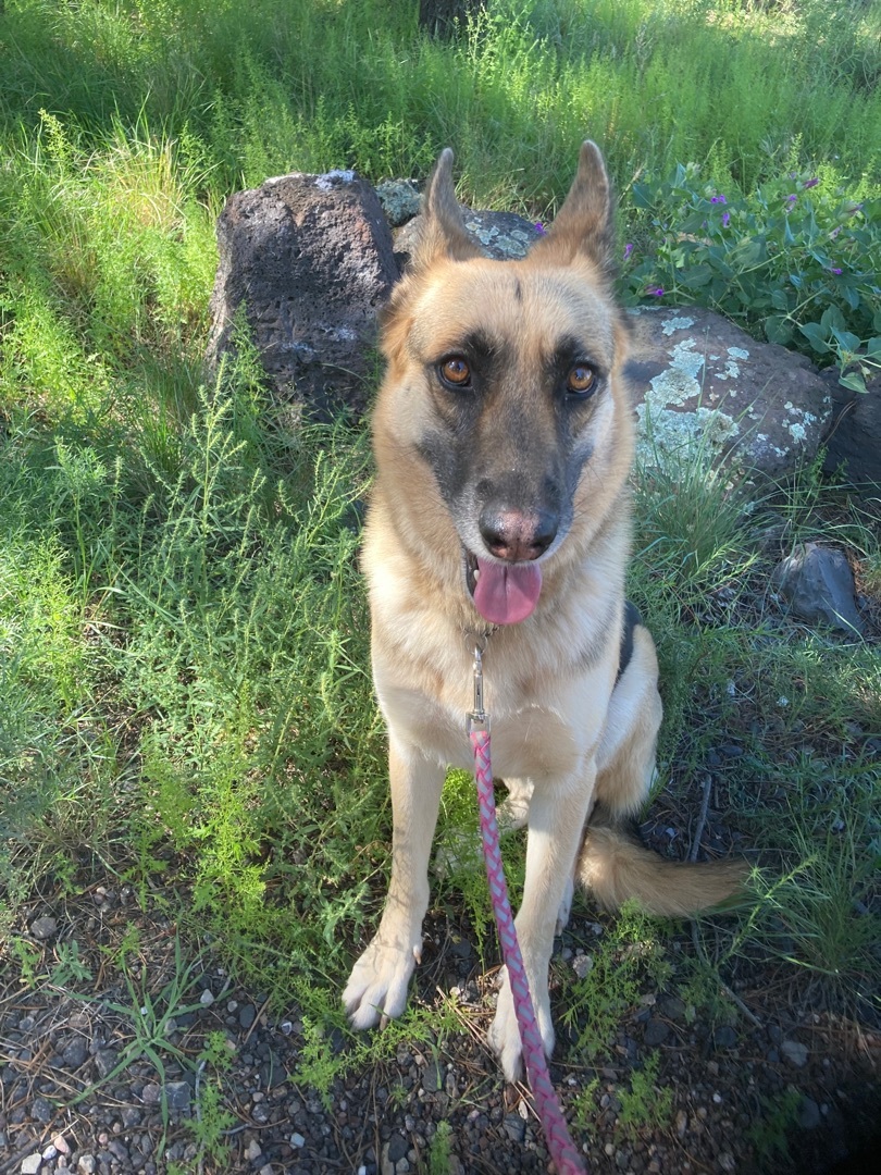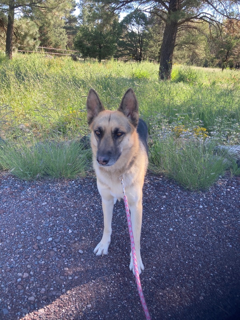 Olive is absolutely lovely! This gorgeous girl is about 3 years old and on the smaller side, around 50lbs. She can be a bit shy, but once she warms up she’s all cuddles. She will do best with an active family experienced with GSD’s, older kids, and a securely fenced yard. She is up to date on vaccines, spayed and microchipped.