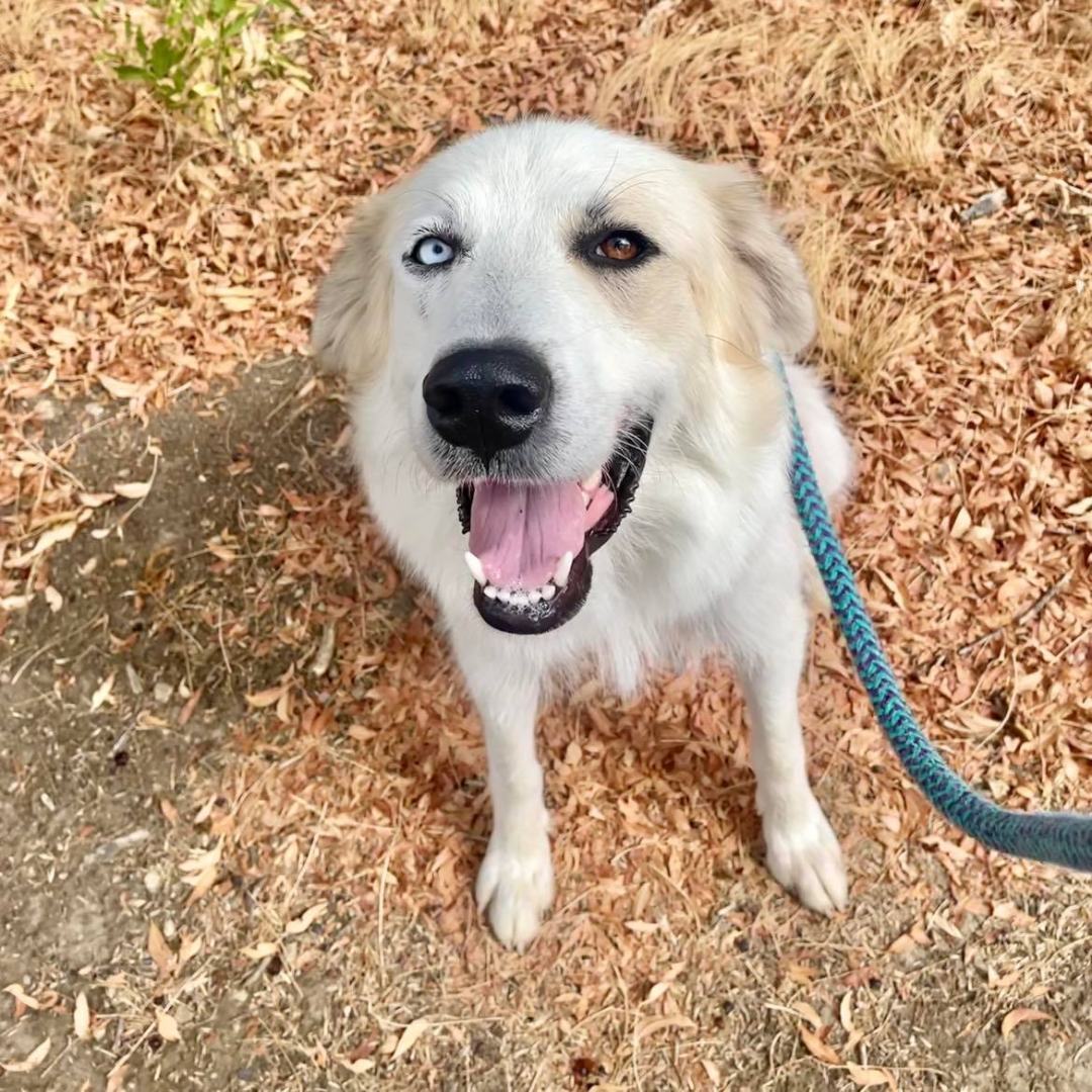 Annabelle is a 4-year-old Great Pyrenees/Australian Shepherd mix. She came to us with a litter of puppies from a family that had too many dogs. She is the sweetest girl always ready for a walk. She has learned to walk on a leash but could benefit from a bit more training. She know is a smart girl and knows how to sit and shake. We don’t know if Annabelle is fully house trained, but she is very clean in her kennel. With some guidance and patience, she will learn in no time. She has done very well with everyone she’s met and has gotten along with all dogs as well. We are not sure about cats. This sweet girl needs a home where she is loved and where she can forget where she came from.