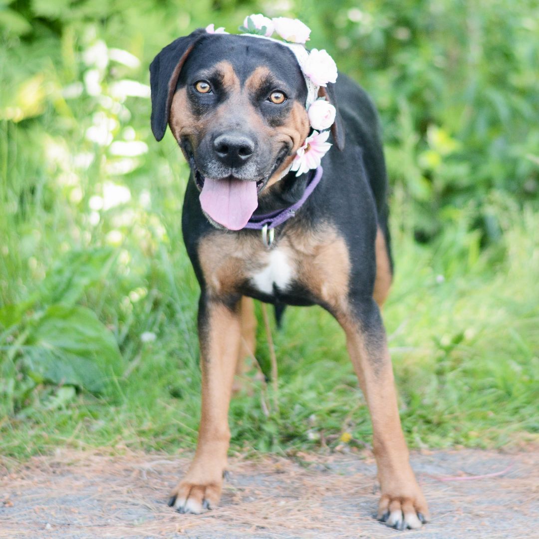 My name is Willow. I was found as a stray and brought to the shelter. I am a sweet and friendly girl. I love attention from people and getting outside for walks. I love car rides and playing with my toys! I get along well with other dogs, so if you already have a friend at home, that will be just fine! I came to the MCSPCA on 5/13/22. Would you like to stop by and visit with me?