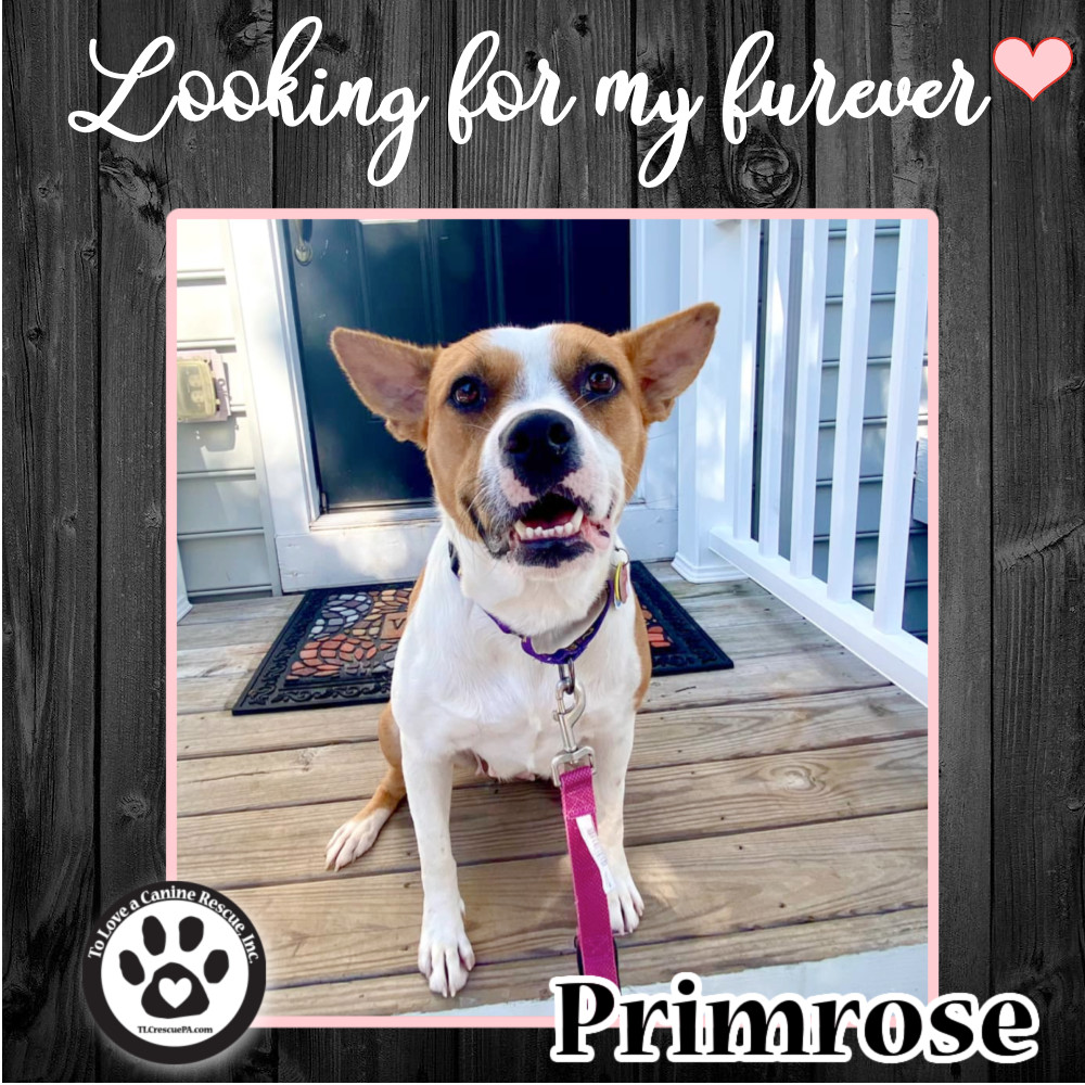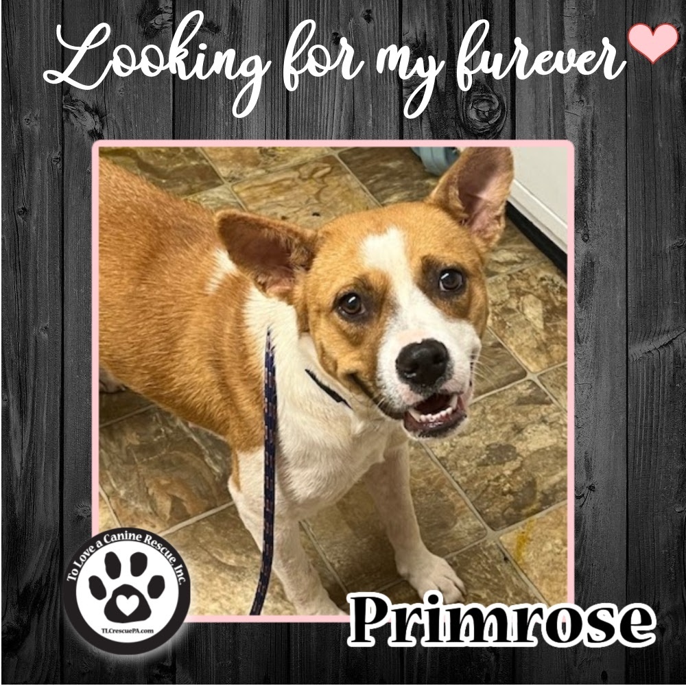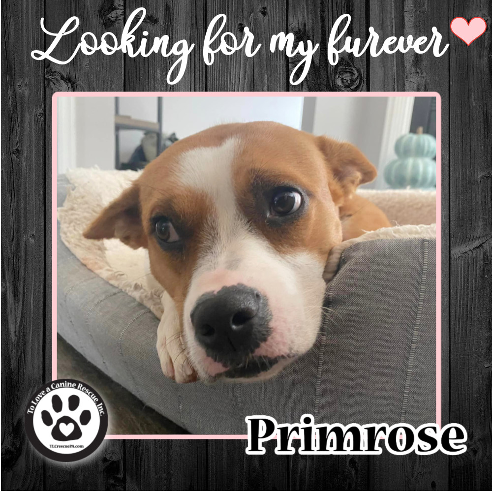 Meet Primrose Breed: Hound Mix Estimated DOB: 09/08/2020 Sex: Female - Spayed Weight: 43 lbs Things to know: - Found as a stray with her friend Petunia in SC and was picked up by animal control and brought to the shelter - Super sweet and friendly - Loves to give kisses - Good on leash - Crate trained - Housetrained - Dog friendly - friendly with every dog she meets - Has not been assessed with cats yet - Great family or companion dog Learn how to adopt at TLCrescuePA.com/adopt