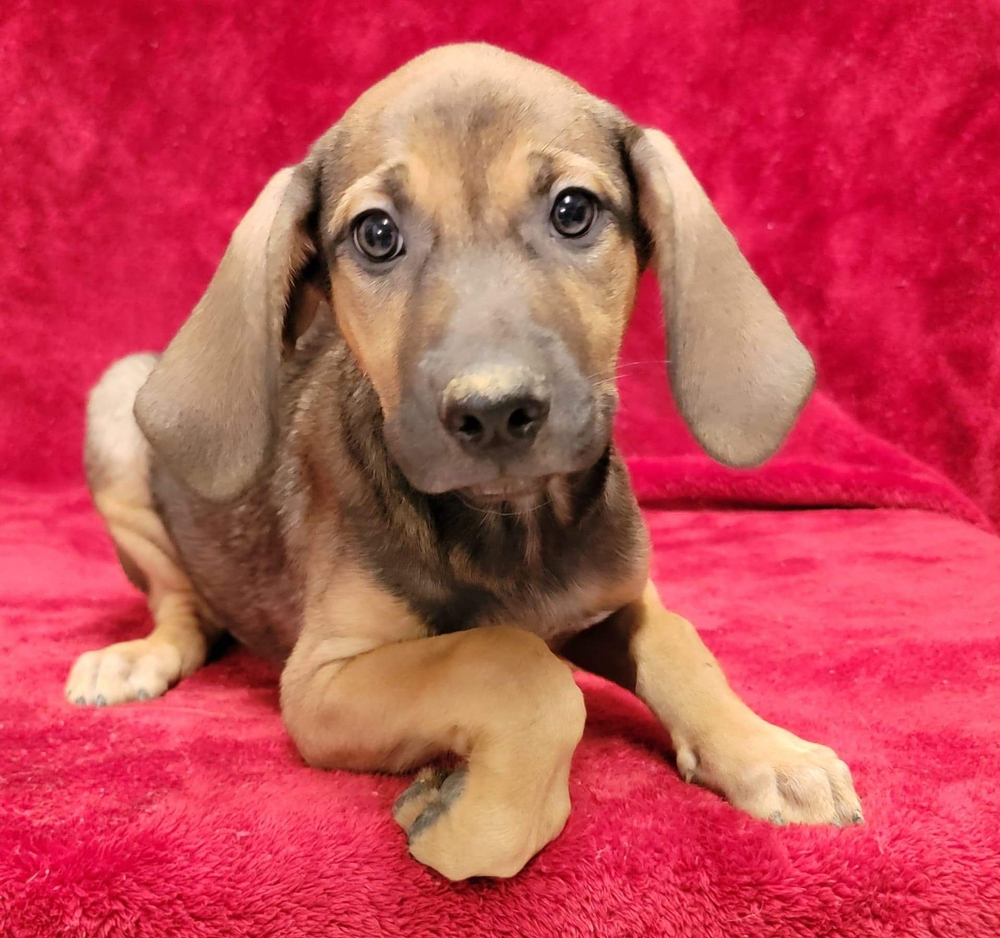 10 weeks, Hound Mix, 13lbs, Spayed female (Expected to be Around 55lbs Full Grown) If interested in adopting please read everything written below and submit an adoption application (www.socialteesnyc.org) if the pup seems like a good fit for your family. Please Note: We can not guarantee breed mix or age or full grown size, Both are an educated guess. Energy Level: Higher - As an adult will need a minimum of 90 minutes of walking/physical activity a day. Home Recommendation: Can live in the city or out of the city. Is a puppy so has the potential to be an amazing pal in the city. Wouldnt say no to the burbs. A high active household that is ready to take on the joys (and lots of hard work) of raising a puppy. These pups need adopters that have some dog experience under their belt. Adopters should be really comfortable with taking care of dogs. Should have some primary dog ownership experience or really solid fostering or dog sitting experience (of high active breeds). Should have more experience than just petting a dog on the street or growing up with a dog. Hounds are amazing dogs but thier love language is walking and outdoor adventures. So if you dont enjoy spending lots of time outside and you dont already go on frequent walks or runs - this isnt the dog for you. They are smart and require a lot of stimulation, exercise and training. Adopters will need to be ready to spend a considerable amount of time and energy doing training - we are huge fans of professional training. Her foster says: Eggplant has been such a joy. She is super silly and playful at times (army crawling on soft carpets, extreme zoomies in private outdoor spaces where she can run, pouncing on her toy when we play fetch), but she also loves to nap and cuddle (passes out pretty quickly, easily falls asleep in my arms/on my lap/leaning against me). She loves everyone she meets and will let anyone pick her up / hold her. She loves constant attention - will bark if she wants to play and no one will entertain her. She doesnt seem to love the city - gets nervous on sidewalks and jumps every time she hears a truck or loud noise. When on the street, I have to pull her on the leash to get her to walk so her confidence will need some time to show through. In a private outdoor space, she will walk confidently and quickly. She loves to play with her chew toys, but also likes to chew on anything she can get her paws on. She is food-motivated - already taught her "come" after 2 days. Working on the potty training - doesnt seem to understand the pee pads quite yet and prefers to pee on grass over the hard sidewalk. Ive been having her spend nights in a crate or playpen - she cries for a minute, but quickly falls asleep and has no accidents overnight. Overall, I love Eggplant and anyone would be EXTREMELY LUCKY to have her join their family. What is a hound? Hounds were originally bred as the first hunting companions. There are many different kinds, and all are smart and high energy. Many are known for their ability to track by scent, and they have a reputation for being stubborn and willful they were bred to think and act independently out on hunts, so learning how to efficiently communicate with your hound can make or break your relationship. They are also known for their curiosity. We cant think of another breed more excited to get out and walk and sniff for hours. What does owning this dog entail?: Tons of socialization, exercise, and mental stimulation is crucial. This dog is considered a working breed since their original purpose was to do a job. Its going to be very important to keep this pup busy both physically and mentally -- that includes a minimum of 90 minutes of quick paced outdoor time plus potty walks every day for this high energy dog. A perfect walking, hiking, and running buddy. They can also be very stop and go walking buddies sometimes because of that crazy nose of theirs, so some hounds require extra leash training -- they literally want to stop and smell every little thing. They are also quick to take off if they catch a scent, so you have to be extra careful with hounds off leash because they will disappear if you havent done enough recall training with them -- or even if you have sometimes, their instincts just take over. We strongly recommend not having them off leash in an unenclosed area. Hounds are excellent snugglers in our experience, and they are great dogs for active outdoorsy people. Heads up they tend to have high prey drive, which means adults are often quick to go for small animals like squirrels and cats. We strongly recommend a basic training course to get a more solid feel for this pups individual needs and how to best communicate with each other. A well trained and exercised dog is a happy dog. Personality: Life of the party. Puppies this young are pretty similar to one another. Think lots of energy, equal amounts of napping. A zest for human connection and the potential to be incredible dogs with lots of training, routine and guidance. Puppies are incredibly loving and sweet. They just need lots of help learning how to be good boys and girls. Please note that a puppy this young is in the easiest stage of its puppyhood. Adopters should be ready for challenges and ready to put serious time, money and effort into training as the puppy grows into an adult House Trained: These pups have started their DAPP vaccine series. They currently arent ready to hit the streets so they are relying on pee pads at this time. Its important to be ready for lots of clean up on aisle PEE. Consistency, praise and patience are the ingredients to house training puppies. Separation Anxiety & Leash Manners: On par for age. Learning to self soothe. Cries for a few minutes when left alone. Due to vaccine status isnt allowed to walk outside yet: will need to learn how to leash walk. Cuddle Factor: High - puppies are usually gluttons for affection and skin to fur contact lol Mouthiness: Medium to High - this puppy is just e