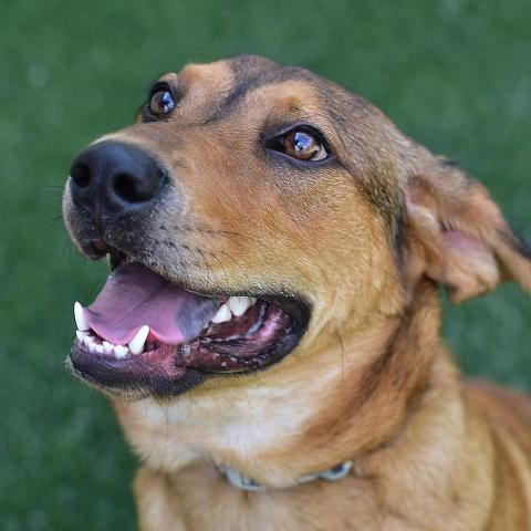 hi! Hi! HI! Are you ready to play? Im a young pup full of energy and looking for someone to put that energy to use! I love to be taught new tricks, go for evening walks, and even like to cuddle! Im a very playful, goofy gal who is looking for a family to grow up with. On a more serious note, she gets along great with humans and dogs alike and is always down for a good time. She wants to be included! She could use some work on learning proper manners, as she does occasionally jump up on you, but is quite gentle and just wants the extra love! If you think you would be a good match for this sweet girl, come meet her today!