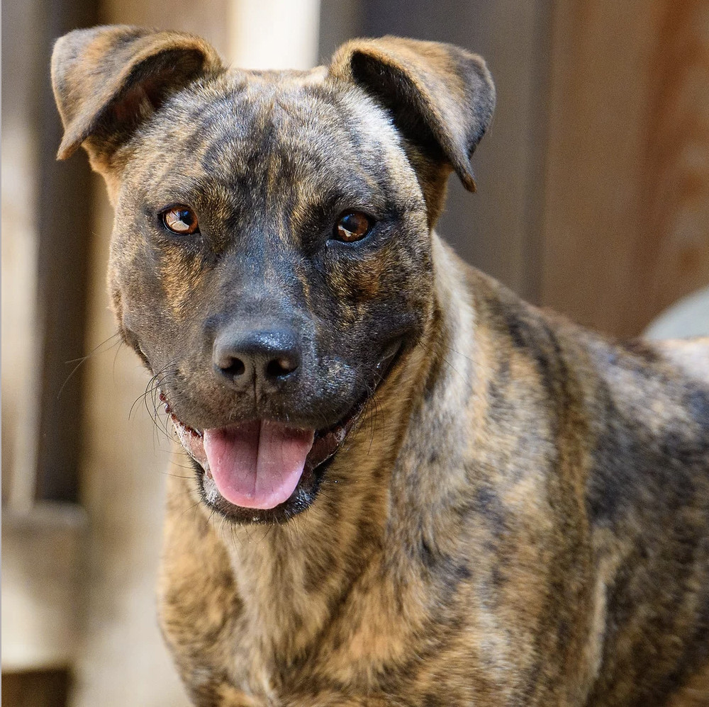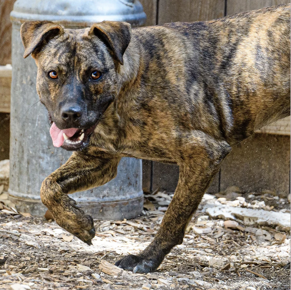 Meet Brenda! Shes a very sweet girl with a gorgeous brindle coat. She loves other dogs, and shes about 1 year old and 40 pounds. Shes done great out in our main yard with other well behaved dogs. She loves the water! She does tend to jump up, so she needs some training and boundaries to learn. Shed probably do best in a home without young children as shes still young and playful and doesnt realize her size. Apply to adopt on our website: https://www.charmingpetrescue.org/dog-adoption-application Located in Boerne, TX. Transport available to other states for $300 fee.