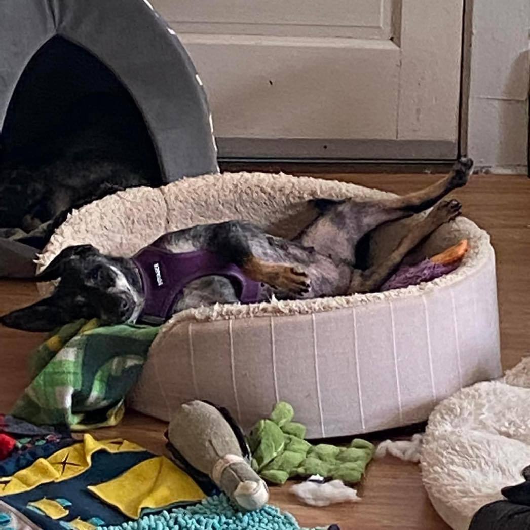 Molly, mix breed, 7 years old, female Molly came from a background of horrible neglect and was seized from a property with over 100 dogs living outside. She is still shy of humans but warms up in time and is a fun, sweet girl. She loves other dogs and will need a home with another dog. She also needs a yard, she loves to be outside but is still very scared and unsure when on a leash. She has been healing from a tough life and is on the search for her perfect forever home. Apply to adopt Molly at: linktr.ee/mirishaven