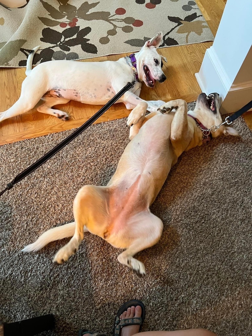 Molly is a super sweet, playful 10 month old lab mix puppy looking for a family to love her and play her heart out. She needs a fenced in yard and someone who just wants to be her everything! Molly is crate trained, good in the car and loves her daily walks. She will alert you to any squirrels in the yard or zip code. Molly is very curious about cats and will probably want to play with them, so if you have cats they should be dog savvy. She takes a minute to get to know you so she may bark when first meeting new people but give her 1 minute and she will be in your lap. At events she does great! Molly is good with dogs but in the home she prefers to be the only fur baby. She would do best with children 12 and older as she is still learning not to jump to get attention and that every lap is not a chair. Looking for a goober to keep you laughing? Molly is such a kind and happy girl! ** All of our Wigglers are spayed/neutered, vaccinated, microchipped, hw tested/treated, and on preventatives. Most of our adoptable dogs need fenced in yards or an exercise regiment. We require proof spanning 2 consistent years of HW preventatives for already owned pets, UTD on shots, and spay/neuter in order to adopt. Please read their description above closely. Our adoption fee is $400. For an application to foster or adopt, give us your number and email address in a message. **
