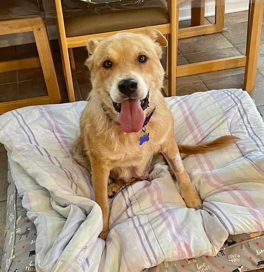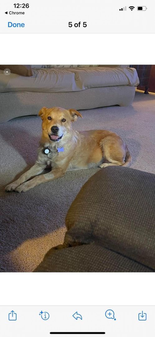 Ellie Mae is approximately 8 years old, a lab/golden mix. She is a laid back, super sweet companion. She is good with kids, dogs and cats. She likes to lay around the house and be part of the family. She can pull on the leash a bit and we are recommending a fenced yard for her. She is not a barker and doesnt jump on furniture, preferring to hang out on her bed. She is housebroken. If you are looking for a calm, sweet companion, please consider Ellie Mae!