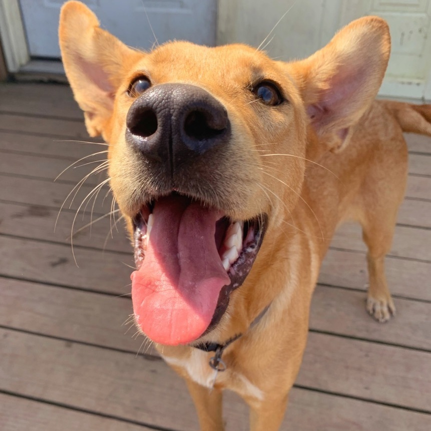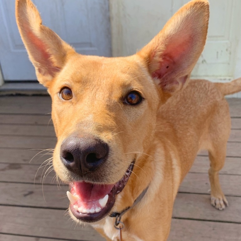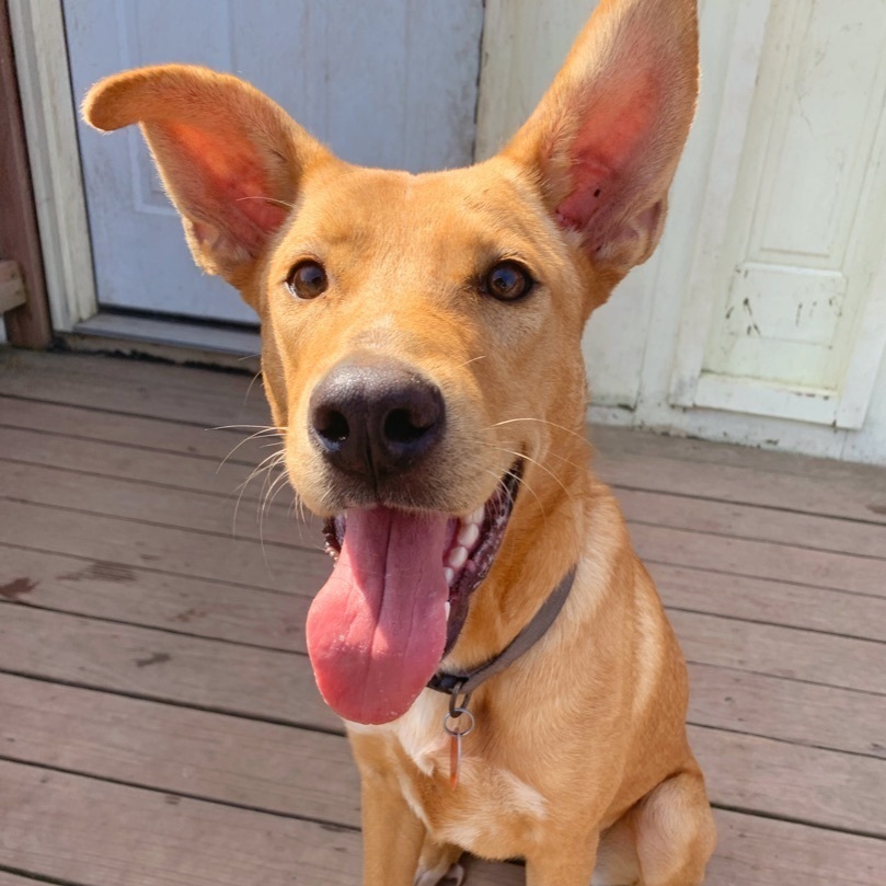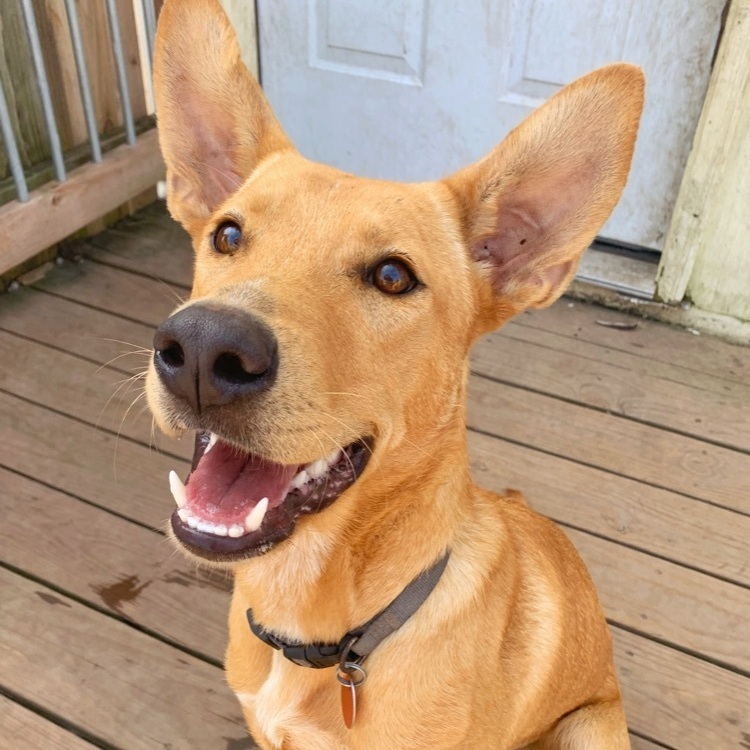 Hi, there! I am about six months old, and I would love to meet you. Check out my ears! Arent they cool? The hoomans here at HOPE say Im probably a lab mix, but they love guessing what that "mix" is. One said "Basenji?" But really, who cares? I am about 33 pounds, and I need to gain a little weight, but I dont think Im gonna be all the big when I grow up. In fact, I dont really think Im going to grow "up" anymore. I will probably grow "out" a bit, but I think I will stay pretty lanky. I do have occasional accidents, but I am well on my way to being potty trained. I love everyone I meet, and the cats in the lobby seem pretty cool. I also play well with several of the dogs here.