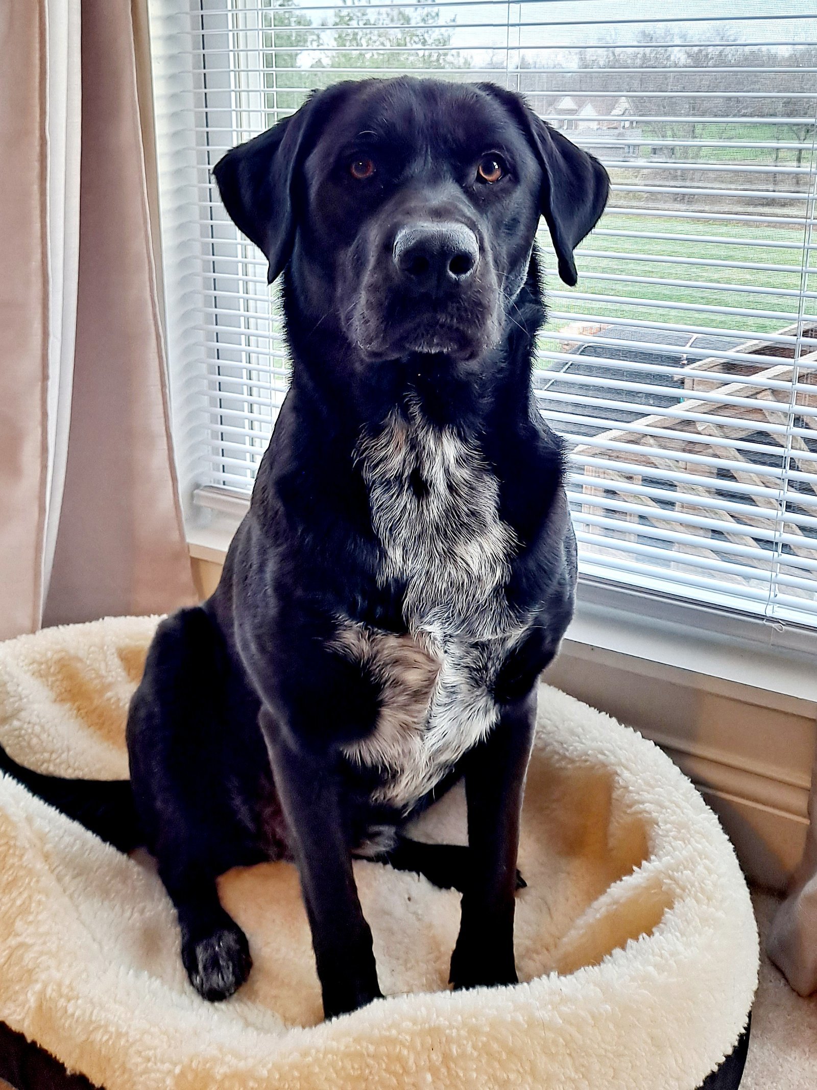 Lola is a very large 84 lb lab mix who needs to be an only pet. Shes been spayed and is up-to-date on shots. She is on a medication to help with occasional incontinence when she rests. Lola is housebroken but needs her breaks at least 4 to 5 hours apart to maintain this. She has high anxiety that is controlled with plenty of exercise, so would probably do best in a home with a fenced yard to properly allow for this need. Lola tends to resource guard so having other furry friends is not ideal. She wants her humans all to herself. Her size and anxiety makes having small children around a bit more complicated so we prefer older children only. Slow and proper introductions to new people is required with Lola. First initial greetings are scary to her, but after proper intros, she gives all the loves! She even smiles! Lola needs a special someone who can work with her at her pace. She needs someone patient and willing to set boundaries and hold her to them...to learn her quirks and not be intimidated, but open to creating a special bond. You can see more of her and her personality on Facebook using the link #lolaneedsahome2.