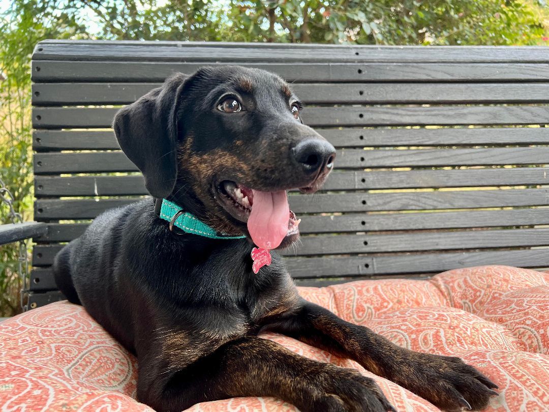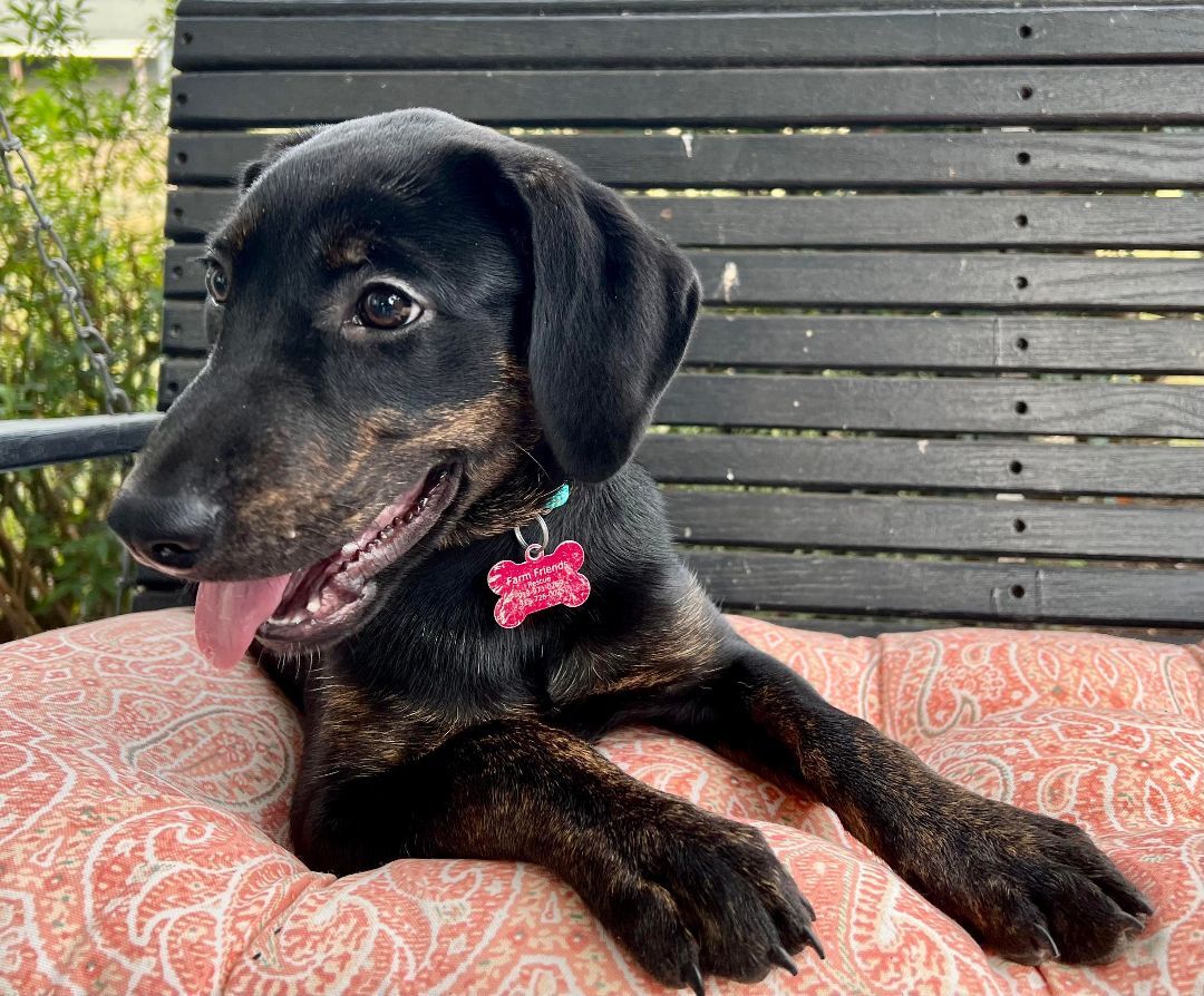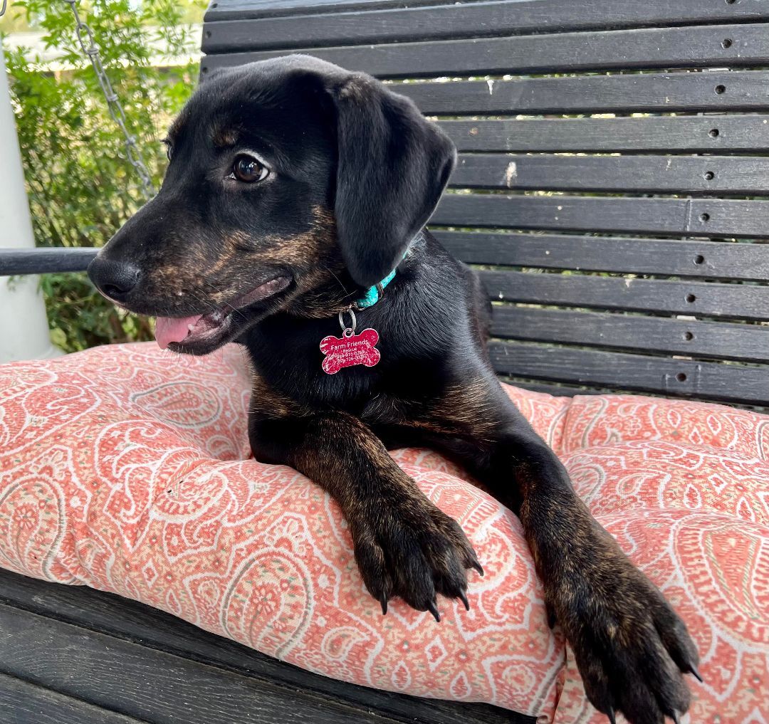 Valerie is a beautiful pup with a beautiful personality as well. She is gentle and loving but still very fun! She certainly loves her playtime with squishy toys – but she is equally content to spend time on a lap with ear pets and tummy scratches. She is ready to find the forever family she will call her own. Our best guess is that Valerie will be a medium sized adult dog and could weigh around 40-50 pounds. Our adoption fee is $235, payable during a successful meet and greet. Please submit an inquiry or email us for our adoption application. Farm Friends Rescue often receives more adoption applications than we have dogs in our program. We are a team of volunteers and processing those applications takes time and resources. Placing one of our dogs into a home is a responsibility that we take seriously. Our goal is to find the best forever family for each and every dog.