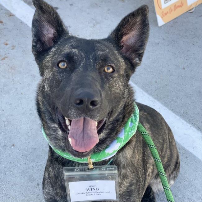 Wing will swoop right in and steal your heart! She is about 2 years old and is a beautiful brindle Lab and Shepherd mix. She recently finished caring for her two puppies and is ready to find a home of her own. Wing is a tenderhearted girl with a gentle soul. While shy at first, she is truly a sweetheart who loves to be where her people are. She plays well with other dogs and is gentle and great with dog savvy children. She loves being part of the pack, running around happily with her foster dog siblings. She would do best with a confident dog sibling in her forever home and a quieter home but one that can continue to socialize her. She is active and agile and with time, we think shed be a good hiking or running buddy. If you are ready to make Wing a part of your family, then fill out an adoption questionnaire on our website today! We recommend completing the questionnaire and connecting with an adoption coach before looking for a dog or puppy youd like to adopt. If youre already approved to adopt or if youve adopted from Labs and More before, connect with your adoption coach for the next steps. Your interest in adopting a rescued dog or puppy from Labs and More Rescue is appreciated! Please find our adoption information at www.labsandmore.org. Your adoption donation provides funding for Labs and More, a nonprofit organization which is supported solely by Volunteers and funded by donations. Good news is your adoption donation can be considered tax deductible. So much care is provided to your new dog prior to the adoption, including: spay and neuter, microchip, veterinarian visit(s), vaccinations, and other medical care as needed. Many of the dogs we rescue require extensive surgeries and care prior to adoption. Please understand we are unable to predict future behavior or medical needs of your adopted dog. We provide no guarantees regarding behavior, breed, or age of the dogs. Thank you for rescuing.Thank you for looking to Adopt a Labrador Retriever or other Mixed Breed Dog from California Labradors Retrievers and More Rescue. Please take a moment and go to www.labsandmore.org and click on Adopt to complete our online dog adoption application. If you have any questions email us at doginfo@labsandmore.org or call us at 858-273-5386. Thank you for looking to a rescue group to fulfill your dream of adding a new dog to your life! Dogs + Love = Family