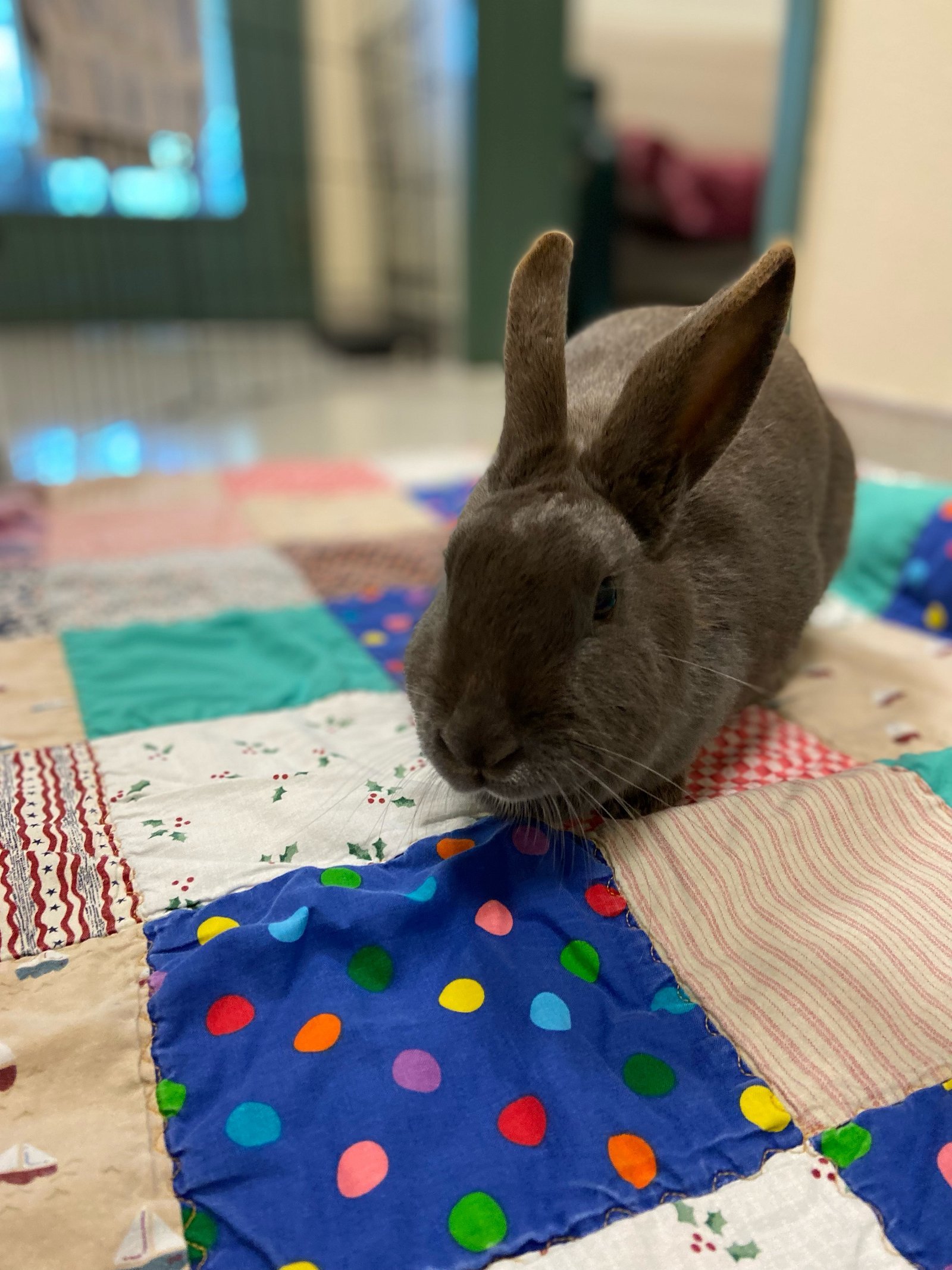 Clover is an adult Lilac rabbit. She is quite timid around new people but is making progress with us every day. Clover enjoys eating her daily greens from our hands and having her nose scratched. Clover is looking for an experienced rabbit owner who will take the time to gain her trust. 9/28/22 7:24 PM