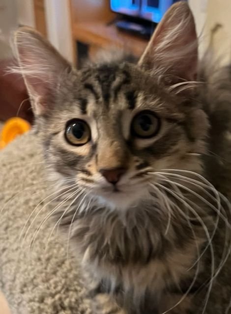 Katie Purry is sweet, adorable, cuddly, fun, the list goes on and on. We think she may be part Maine Coon.She and her BFF Taz must be adopted together. For more info about this cute duo, please email their foster mom at anangelrn@aol.com. Thank you for considering a rescue kitten!! HALOs cats and kittens can be seen at Pet Food Express every Friday 4pm-7pm plus Saturday and Sunday 10am-1:30pm (except the third Saturday - we do not have an adoption event). Pet Food Express is located at 5829 Lone Tree Way B, Antioch, CA. For more information you can email us at contacthalo@yahoo.com . To see more of our cats and dogs go to www.eccchalo.org .