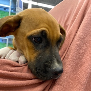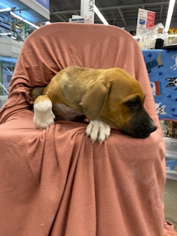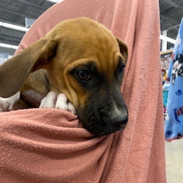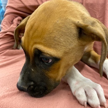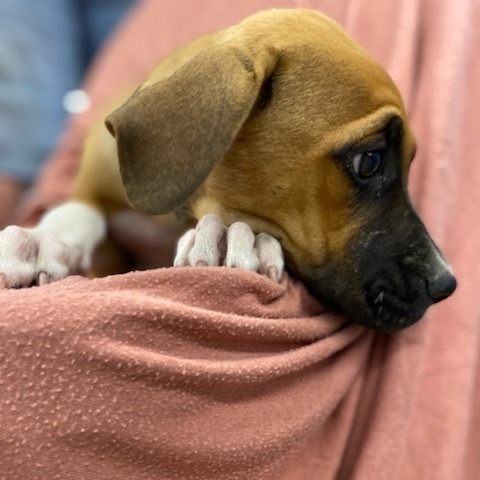 This is Victoria, one of our sweet puppies. We are in need of fosters! Please submit an inquiry if you are interested in adoption or fostering beautiful Victoria.