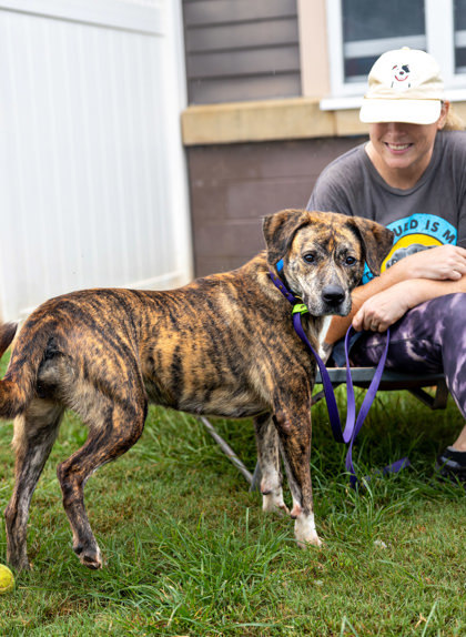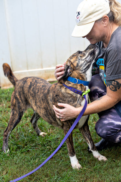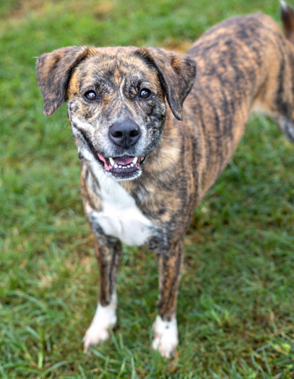 Youll want to take any bridge to meet Terrebithia! This brown and black brindle beauty is a bit shy at first but warms up quickly and is very affectionate after an introduction. One of our volunteers shared that Terrebithia has medium energy, is easy to walk and loves a good treat. She loves running around in a backyard and we know this sweet girl will make a wonderful dog after she gets to know her new family. Come meet Terrebithia today!