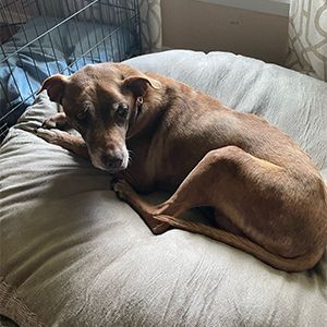 Hello folks, my name is Hollis and I am a 12 year young mix that was lucky enough to be rescued with a 12 year young English Setter, Becca. Unfortunately Becca and I can’t tell our rescuers what life was like before we were found locked in a house, starving and abandoned in East Texas. When the Lake Patrol found us, thanks to some neighbors, we were very emaciated and in really bad shape. Luckily SWESR took us both into rescue, took care of all of our vetting needs and found us great foster homes where we are being well taken care of. You see, the thing is, I really don’t like to share my foster mom with other dogs and there are 8 of us canines in this house. Soooo, I am looking for a Furever Foster or adopter who will give me all of the attention. I am housetrained and learned to use the doggy door the first day in my house. Walks are ok and I don’t pull like most Setters, but mostly I just like to lay on the couch or a comfy dog bed where I can see my people at all times. It was really scary being locked up without food and I get anxious when I am locked in a room without my people. I am ok in a crate for a little while, as long as I can see you, but really prefer to be closer to you. I am not really a snuggly lap dog, though I am not opposed to being petted. I am spayed and up to date on my shots. If you are a home looking for an only dog, would you open your heart and home to a senior dog that needs a soft, lovable place to spend the rest of my days?