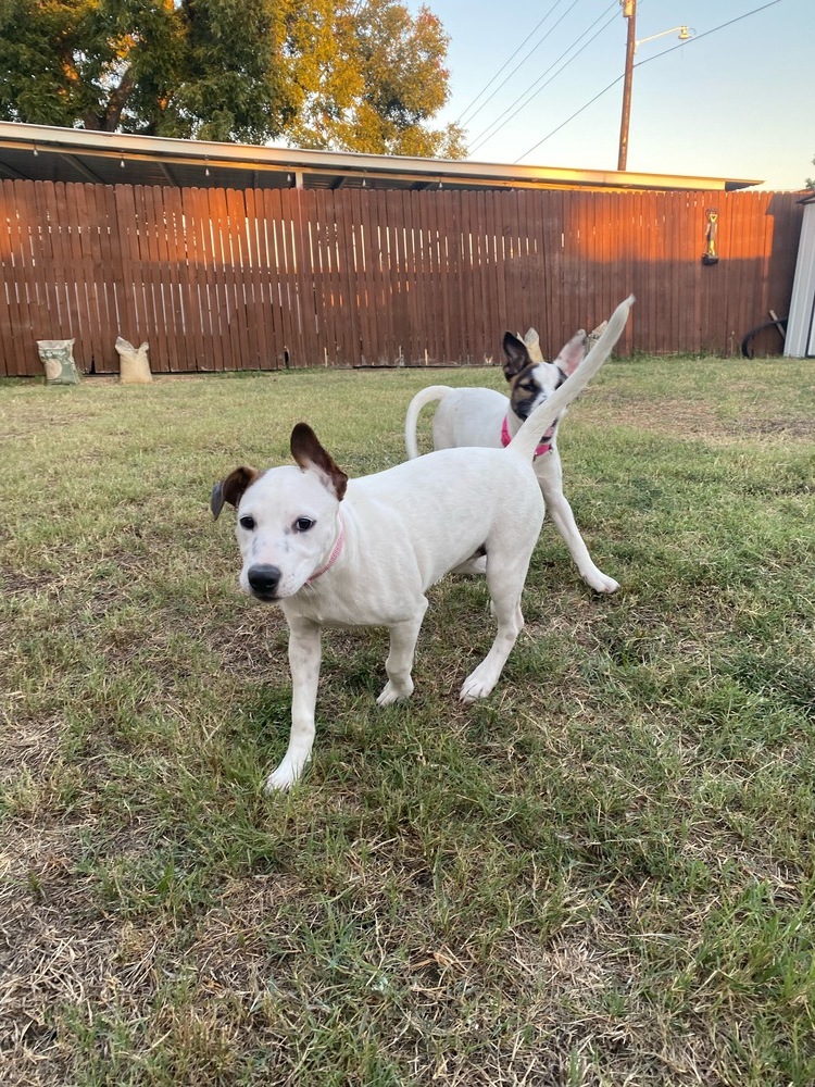 Foster or Foster to adopt Peridot Pup, Klee, is part of a litter that came up on transport from South Texas. She is a very sweet girl, around 2.5 months old and will be medium size when fully grown. She is well socialized and great with dogs and people. Not sure on her breed mix but maybe some retriever. Klee is a smart girl and right on track with her puppy manners. Collei is a fun super playful pup. She loves running laps around furniture and following you everywhere you go. She is very sociable with other dogs and isnt scared of big dogs. She will take to house training quickly as she is habitual with where she poops and pees. Collei loves spending the day wrestling and tugging toys with Klee. She is available to adopt or foster to adopt now and will be ready to adopt in a couple of weeks. Please submit an online foster or adoption application at codysfriendsrescue.org or https://petlover.petstablished.com/pets/public/1507665. We will contact you for a meet and greet. You can see the rest of her littermates under the heading Peridot, at the link above. No apartment homes for pups under 6 months of age. Applications are at codys_adoption_application. Codys adopts dogs in the greater Dallas/Ft Worth area, and does not adopt puppies under the age of six months into apartment homes.