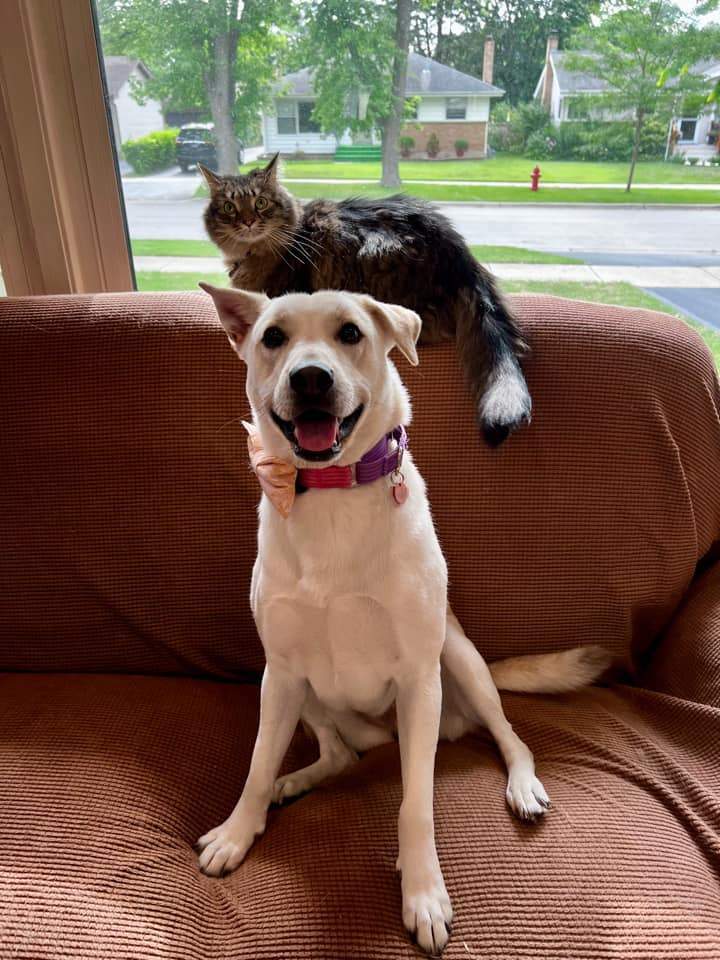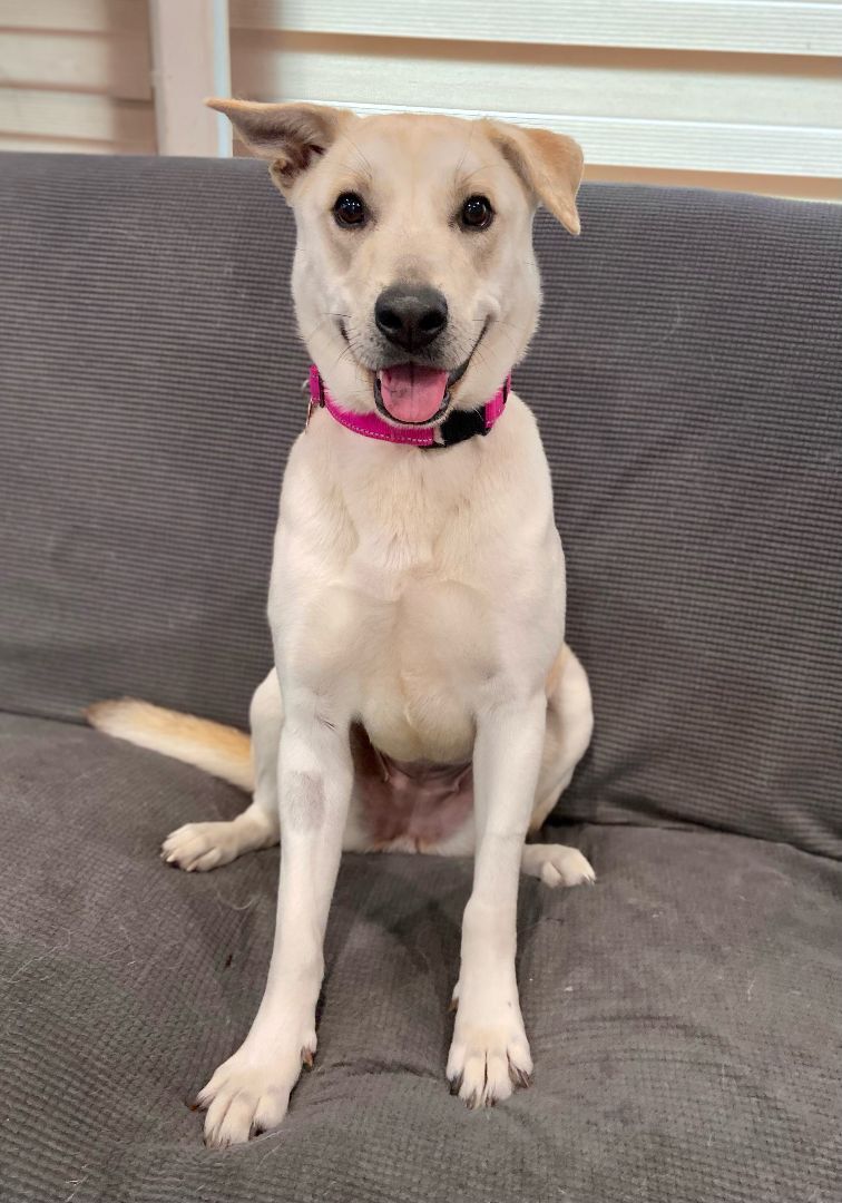 *SPONSORED ADOPTION FEE* FAST FACTS * 2 Years Old - 53 pounds * Cuddly, Loving, Loyal *Very Smart: Knows Sit, Down, Touch, Watch Me, Leave It, and Find It * Medium Energy * Dog Friendly - Needs Slow Introductions * Cat Friendly * Potty & Crate Trained * Quiet, Suburban Neighborhood Required * Older Kids (10 Years+) * Training Required BIO: Greetings from your furry friend Ada. Fetching Tails rescued me from an overcrowded partner shelter in Texas, where I’d lived for more than 7 months, and placed me in a wonderful foster home. Now that I know what it’s like to feel safe and loved, I’m quickly blossoming into the happy, loving, and confident dog I was always meant to be. My favorite activities are snuggling with my foster family (especially in their beds), playing with my new toys (bones and Kongs are my favorites), and taking long walkies (I’m getting better on the leash every day!) I get along with other dogs, though I need slow introductions, and I even like cats, although I’ve noticed the feeling isn’t always mutual and I would do best with a kitty who doesnt mind my playful nature with them. Here are some other things you should know about me. First, I’m 100% potty trained, and I am also crate trained. I would also thrive with patient humans who understand that it takes me time to adjust and feel secure so we will probably need a few meet and greets to get to know each other; once I know I am safe with my people, I am the most loyal, loving dog you will ever meet. At least initially while I settle in, I would prefer a quiet home without too many visitors (I sometimes bark at people at first until we become friends) and older kids who understand my personality. I would do best in a quiet, suburban neighborhood, and if you have a fenced yard, I prefer a privacy fence rather than a chain-link. But if you don’t have a yard, lots of long walks that let me safely enjoy my outdoor time will be fine. Lastly, I’m very smart and need my person/people to commit to signing me up for training classes. Since I can be reactive around hyper dogs, a program with calmer pups or private lessons would be best. I’ll thrive as I learn—especially with tempting treats for extra motivation—and I promise to become the best canine companion ever! I even have quite the leg up on my classmates because my foster parents have worked with me to learn many basic commands including sit, down, touch, watch me, leave it and find it! Have I convinced you it’s time to schedule a meet & greet? Then please fill out an adoption application ASAP. When we get together, you’ll recognize me by my bright eyes, wagging tail, and big smile meant just for you! Love and licks, Ada ADOPTION REQUIREMENTS, NO EXCEPTIONS: *ADOPTION FEE: Sponsored *Be at least 21 years of age *Live in a 50-mile radius of Itasca, within the Illinois border *Have the knowledge and agreement of all adults living in the household *Have approval from owner of residence (written in lease) *Have a valid ID with current address (please provide proof of address if ID address is not up-to-date) *Be approved as a suitable adoptive home by Fetching Tails Foundation *Be prepared to make a lifetime commitment *QUESTIONS ABOUT OUR POLICIES? All your answers here: https://www.fetchingtailsfoundation.org/faq If interested please fill out an application on our website at www.fetchingtailsfoundation.org; please make sure you fill in every required field/question or your submission will not go through. Please note that we take time to learn as much as we can about each dog in our care and our bios are our current observations; we are unable to make any guarantees on the future health or temperament of your adopted dog. Most dogs in our care come with unknown pre-rescue history and as such breed and age estimates are an educated guess.