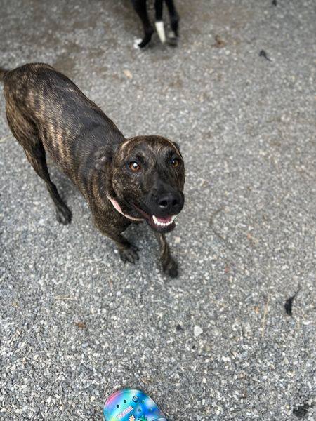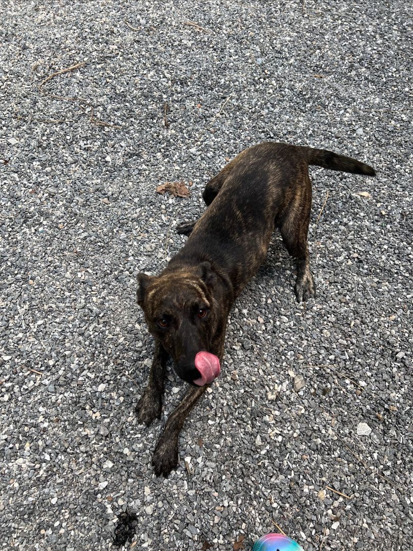 Meet Eloise. Eloise is such a gentle soul, and she loves everyone. Eloise was brought to us as a stray, but hasnt let that slow her down. She loves to play with tennis balls (Even though she doesnt bring them back), and loves to hang out with her human friends. She also does great with kids and would be an awesome family dog.