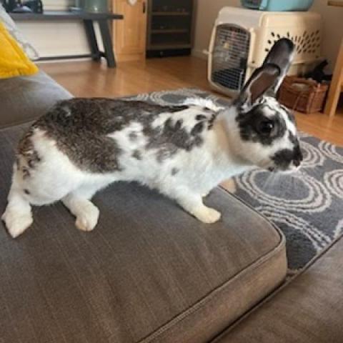 Stella came to us from a very bad situation where she was kept in a tiny outdoor hutch. She is an adorable bun who is outgoing and has adjusted well to the busy household and dog in her foster home. She would do best in a home where she has lots of space to explore. Stella is spayed, vaccinated and microchipped, and ready to go to her furever home. Her adoption fee is $85. If you would like to meet Stella, please email napabunnies@gmail.com or complete our adoption application: https://www.shelterluv.com/matchme/adopt/BUN/Rabbit