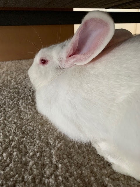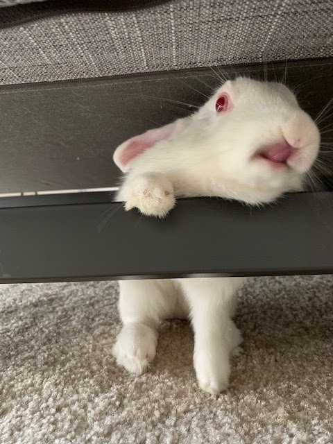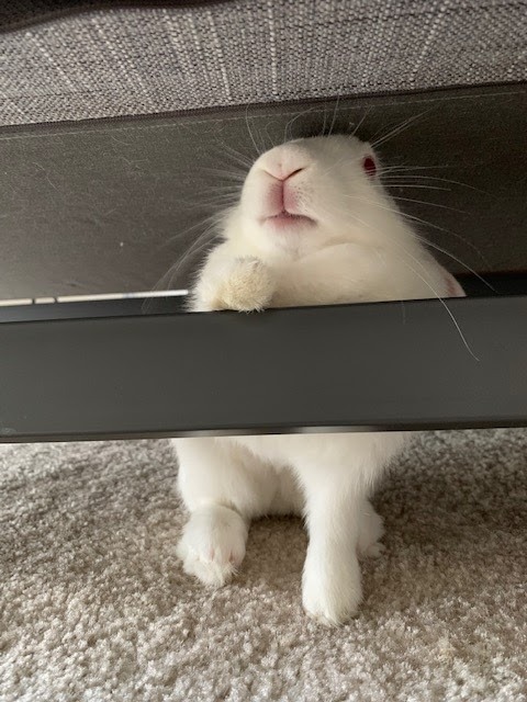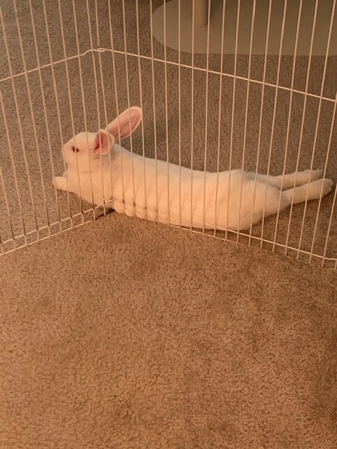 JOY MORTON Female, REW DOB: 2/4/2021 From Joy Morton’s foster Mom: Meet Miss Morton, a five-months-old adoptable female rabbit! She loves her playtime and toys, is pretty great with her litter box habits, and she loves a good snooze under my futon. Due to her young age, she still has a lot of that cute, spazzy energy in her, which is definitely entertaining. Lots of racing around and leaping through the air! Also given her age, I would recommend a number of toys for her to chew on to help her work off that urge. Miss Morton has shown interest in my pet rabbit through the baby gate I have up to separate them, so she could be a good fit for a home with other rabbits. Email lizzymcneil@hotmail.com to meet Joy Morten!