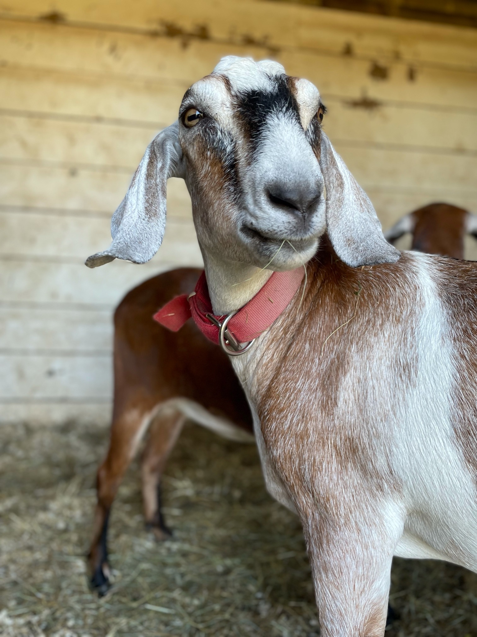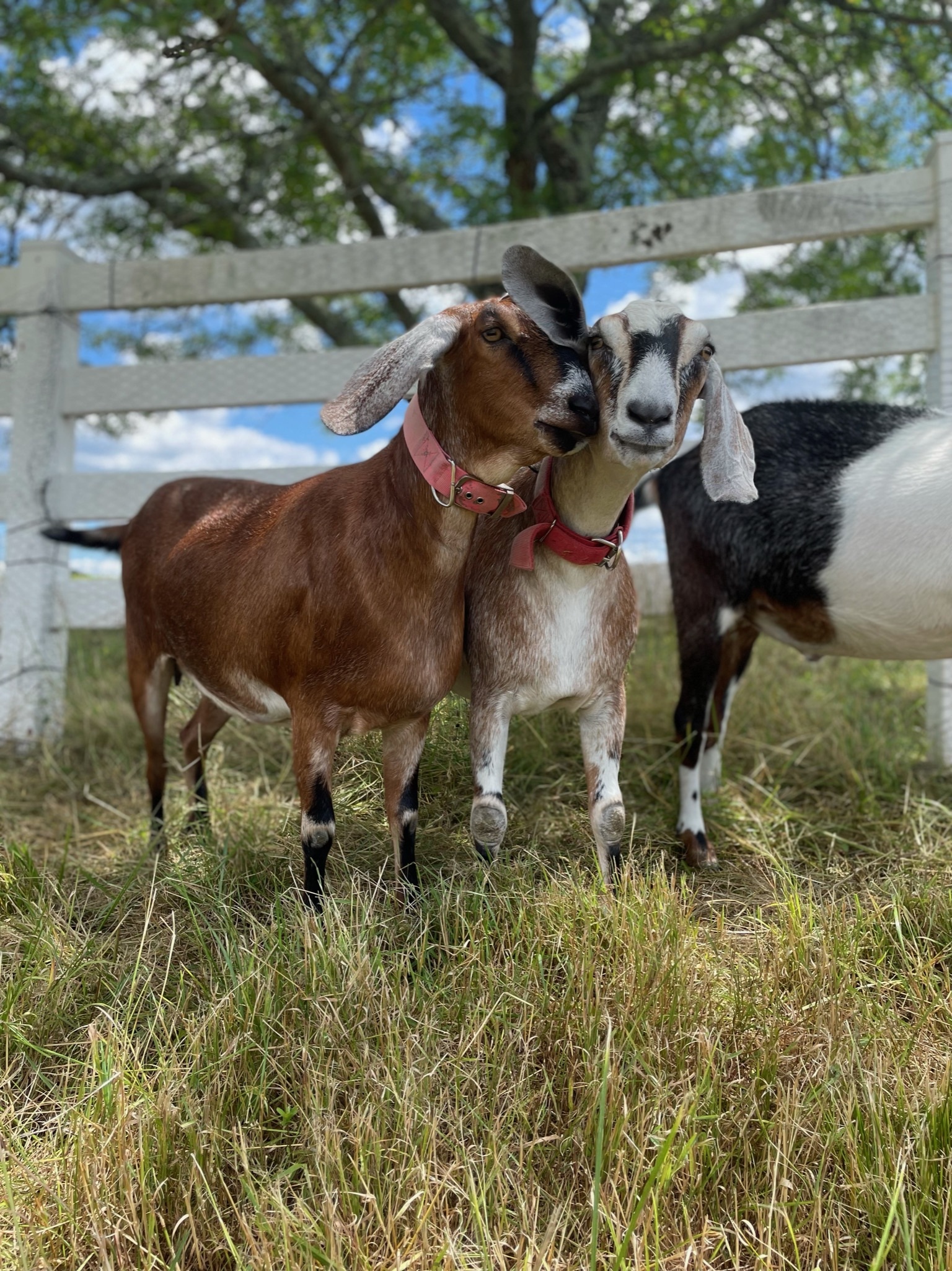 Elsa and Anna are two beautiful, gentle, and friendly Nubian goats who are looking for a new forever home together! They came to us from a local family who could no longer keep them when the owner began having medical problems. These two were very clearly loved dearly in their last home so we expect no less for them in the future! Elsa is the older of the two and more outgoing and confident. She will walk up to anyone and everyone, but her favorite people are children. She will come right over and demand love when kids come to visit and we think she would love to have some children in the home or visiting her forever home. Anna can be a bit more timid, but with Elsas example and some patience she is learning that people are trustworthy and often have snacks! These girls do beautifully in our goat herd and would love to have other friends in their new home, but as long as they have each other they are fine without friends as well. If you think they are the perfect match for your home, apply to adopt them today at waywardranch.org!