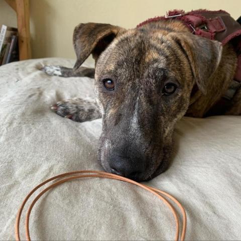 Hi, my name is Ivy and I already love you! Im looking for my new forever home, so here are a few things about me. I LOVE to play (at home, at the park, at the dog park, with toys, without toys, you name it!), I LOVE treats, and I LOVE to run! I really like to play fetch, although I sometimes get confused and forget to bring the toy back to you. I want to get better at being on a leash so that I can go on more walks, and even maybe on runs! Playing with other dogs is really fun, but I am also satisfied with just the toys and my humans. Sometimes I get so much energy built inside of me, I just cant help but to run zoomies! I would love it if my new home had a yard for me to get my zoomies out in. I would prefer my new housemates to have plenty of time to play with me, as I can get bored and restless fairly easily. I CAN live with a cat sibling, but most of the time I get too excited and chase them away... I cant help it! Also, Im really smart and know how to sit, stay/wait, spin, shake hands, and lie down! I cant wait to go home with you and have fun!! Ivy is participating in The Love Pits iRehome program, so ongoing care and custody are provided by their foster. All behavior and medical information is provided by their caretaker, and TLP encourages all adopters to verify the information with their caretaker prior to adoption.