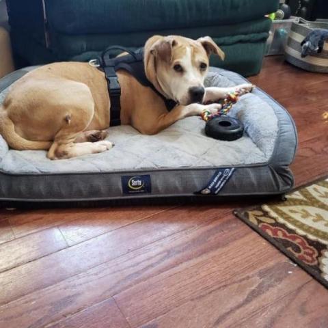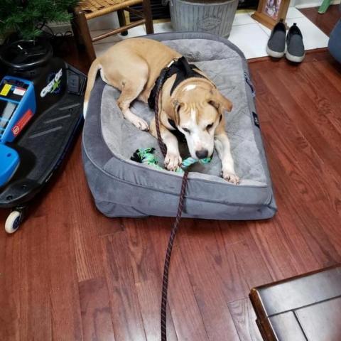 LOCATED IN CHESAPEAKE BEACH MD OR ARNOLD MD THIS IS A COURTESY POST (MEANING DOGS ARE NOT THROUGH HGLMR) DO NOT CONTACT HGLMR REGARDING THIS DOG IF INTERESTED APPLY DIRECTLY AT WWW.3ACRESRESCUE.COM OR CONTACT 410-570-0166 Bedford is a 3 year old pitmix. He needs a very understanding family. Bedford was found outside a very small rural shelter in NC, dragging a chain that was embedded into his neck. The vet did a thorough checkup and he is healthy but has cigar or cigarette burns that may never fully heal on the back of his ears. Despite all this Bedford still has trust in people even though he is constantly being failed. He is learning that affection is good, he has done extremely well at his fosters. They said he is quickly learning what and what not to do and what is appropriate indoor behavior. Bedford needs someone knowledgeable about dogs.