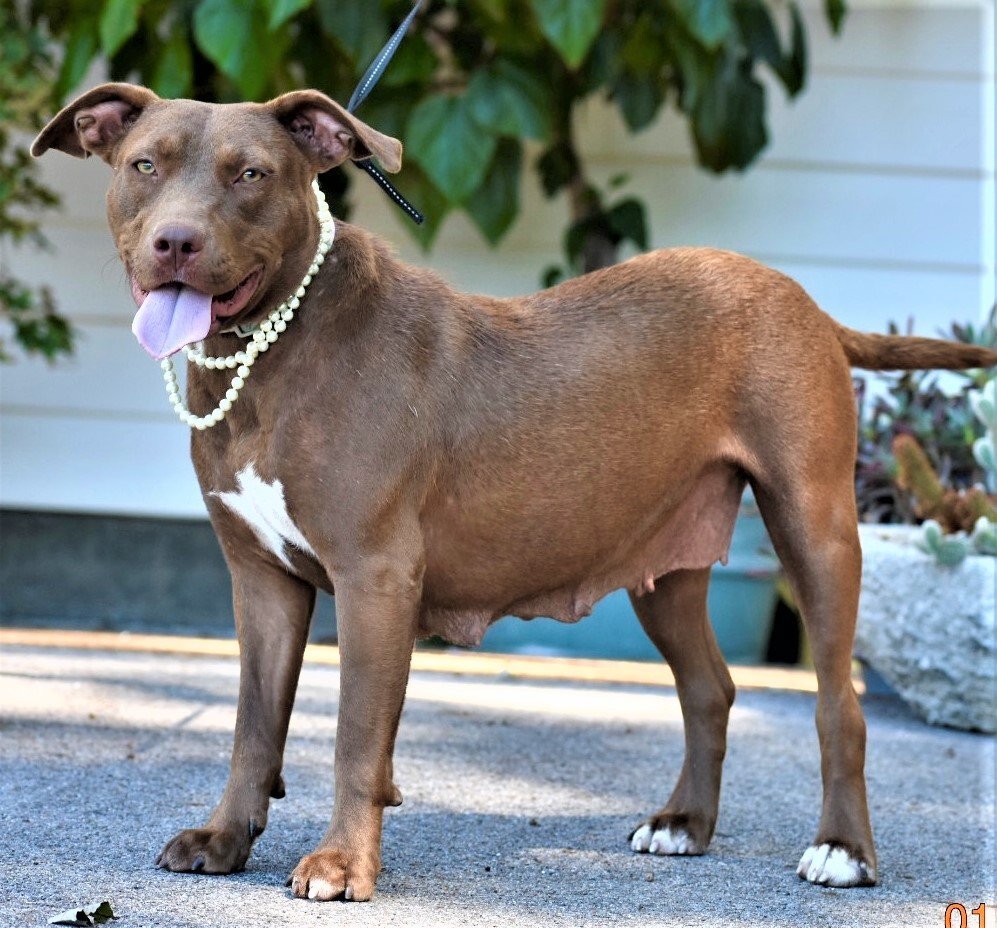 Sometimes it is hard to write a bio when you have never met a dog but heard about them. But Miss Ruby Pearl is not one of those dogs that will ever be hard to write about. Miss Ruby Momma to many Pearl is easy and welcomed and an honor to present to a world that needs more kindness and sweetness offered to our stressed souls who are looking for a gift of love. This precious momma dog that birthed 7 of the most beautiful puppies (ALL ADOPTED) is looking for her own place in the sun. A place in someones bruised heart that is looking for a soul that knows the pain and has love to give her for many years to come. Our photographer who fosters and does 10+ photos weekly of our foster dogs, said Ruby Pearl was one of the sweetest girls she had ever photographed. She was friendly, spunky and just wanted to be skipping along beside them as they took pictures of other dogs at the foster home. Her comments made, were that Ruby Pearl will be an amazing love bug for someone. Look beyond the Pitbull package exterior if you have to....and the sagging boobs that have fed too many litters in the past (and it stopped here with us at Critter Cavalry Rescue ) and see this awesome soul that loves the universe and everything in that universe. She connects in ways to people and animals that is beyond definition. We are looking for a home for this girl that will be there for her and she for them. A 9 hour day crated will not suite her needs but we could see her as a therapy dog if you are so inclined to train for it. She is that solid and good. She is about 2-3 years old and weighs 42 pounds. She is short in stature and one of these pictures of her with her eyes closed is the day she was brought home from the shelter and imminent to give birth. You can see her relief and her prayer to God, thanking Him for giving her a way OUT to have her babies in freedom and a clean environment. She was left abandoned at a rental house and tied to the front porch with milk dripping from her bosoms as she was preparing to drop 7 babies. No food....no water...nothing. She was left behind with dilapidated mattresses stacked against the house and a long rope for her to be tethered to the porch. Pitiful and unjust to treat a very pregnant momma dog to this rejection. Her babies are adopted.... but this sweet Mamma of them, raised beautifully and lovingly, giving her wonderful DNA and soul to them, now needs her own break in life. She is wonderful with dogs, cats and a joy when meeting people. Ambassador, Queen Momma, Sweet and Joyful Friend....and confidant when you have had a bad day. These are all descriptions that could be placed upon Miss Ruby Pearls Shoulders and paraded down the doggie aisle and runway. Wont you consider this most special girl? A dog with the most precious spirit that will change your life for merely an adoption fee after filling out the adoption form. Ruby Pearl is a Pearl that withstood the grit of life and become a precious jewel. Please email us at ccrtennessee@gmail.com ADOPTION FEE REQUIRED. Contact ccrtennessee@gmail.com.