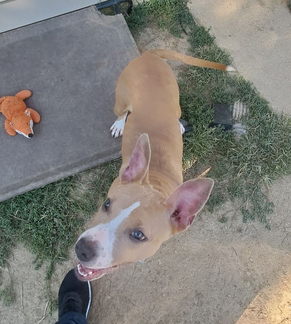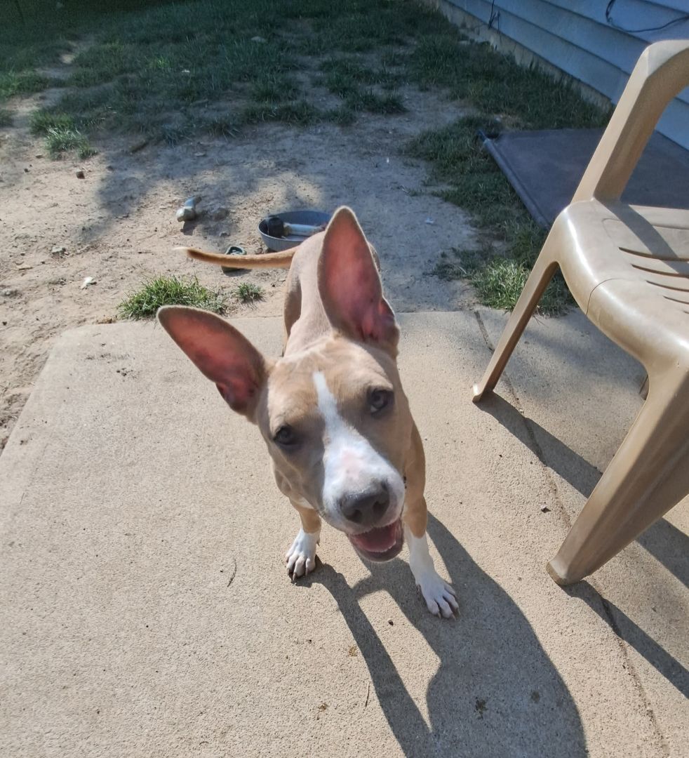 Meet Ausra. This girl is as sweet as they come and is always happy. She came into the rescue after an injury. She was born with a back leg that is shorter than the others and a deformed foot, but dont let that fool you. She can keep up with all the dogs in her foster home and has no issues with it at all. In her foster home she has been around other dogs, cats, and kids. She is working on crate training and house training.