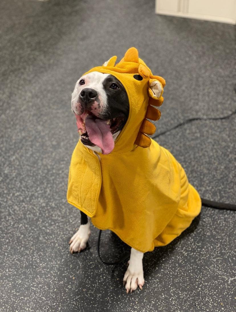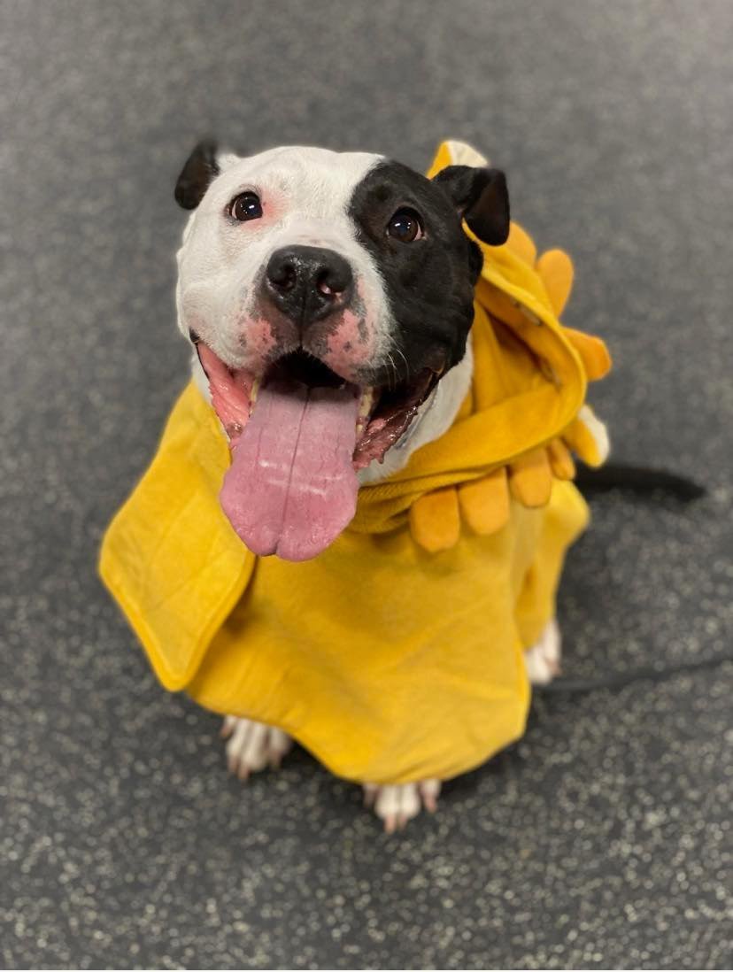 We show our dogs by appointment only. If you are interested in adopting Rwby, please fill out our online dog adoption application. The adoption fee for Rwby will be $150. Meet RWBY (RWOO-BEE). She is an adorably smooshy 8 year old pit bull with a huge heart and a perfect pitty smile. She is a super cuddler and loves belly rubs. You dont need to have a huge couch to be win her over because even if you do she will choose to sit in your lap anyway. RWBYs past owners had a living situation change that meant they could no longer care for Rwby, and that is how she came to be with us, before that, Rwby was found as a stray. So we dont know much about her past life, what we do know is that Rwby is a love bug who deserves a forever home. Rwby does not care for other dogs, however she participated in a 6 week training program to work on reactivity training and other obedience and she is doing amazing in her training! She has learned through a balanced training approach and it has worked very well for her. Along with learning to manage her dog reactiveness she also know many commands such as heel, sit, down, place, and is great at loose leash walking. Rwby lived with a five year old and loves kids and pretty much any people she meets. She is housetrained and keeps her run here at the rescue very clean. She also rides well in the car and loves to go for a pup cup! Rwby needs someone willing to continue training and willing to be consistent in the training style that Rwby has learned so that she does not get confused. Her trainers will provide free training to her adopters to help transition her to her new home and give he adopters the tools to help her continue to succeed! Rwby is an incredibly sweet and intelligent dog who just hasnt found the right person yet, we know she will make a great companion for someone who is willing to give her a little time and TLC.