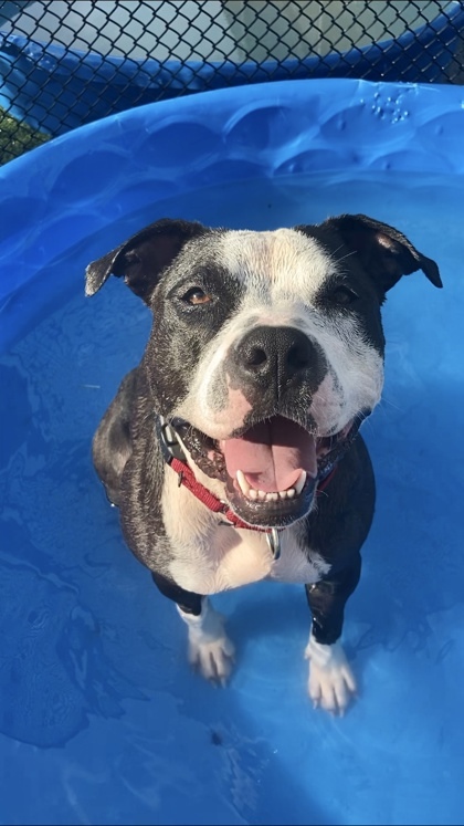 This cute girl is Obra and she has been at our shelter for over 150 days so she is more than ready for her next chapter. An ideal home for Obra has a playful dog or two. Obra loves to play and - rest assured- she can throw down, so it would be a perfect fit if the current dog in the home could match her rowdy energy! Obra loves playing in water, whether its with the hose or just splashing around in the pool. Obra is also smart and will gladly show you her tricks for some yummy hot dogs! She knows sit, shake with both paws and down. She can also do her tricks right from the pool! Obra is a sweet little lovebug as soon as she gets to know you. She just wants a home where she has the time to develop a bond with you. She is a very high energy dog and sometimes doesnt quite understand her size! Because of this, she would do best in a home with no small children. However, at just two years old, she has plenty of love left to give and once you gain her trust, not only will you have the most affectionate dog, but shell be your best friend forever! Obra is currently in a foster home. If you would like more information or to meet Obra, please email foster@kcpetproject.org