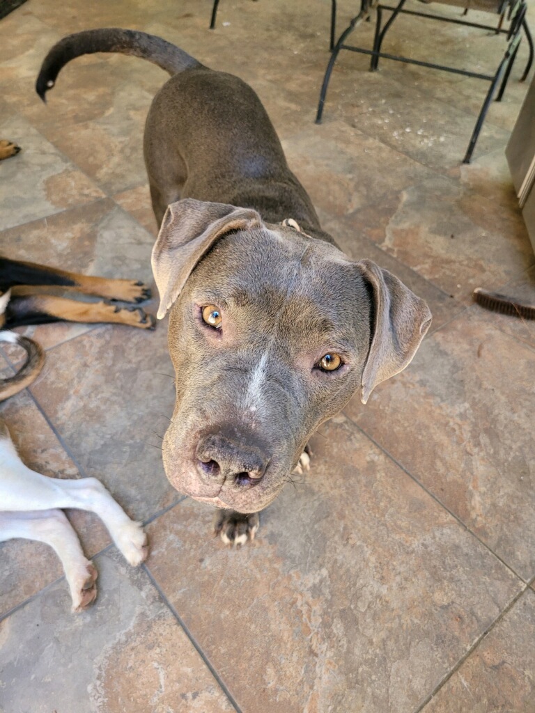 Meet Maggie! Maggie is an absolute angel of a dog that is ready for her forever home!! She is a couch potato that would love to snuggle up in bed with you! Dont let her calm demeanor fool you, she loves to play with toys and chew on her nylabones. Shes ready for a snuggle at any time, and does great on a leash. Shes crate trained, house trained, and truly the FULL package. Shes good with other dogs, small and large. Maggie is about 3-4 years old and roughly 60 pounds. If you are interested in meeting Maggie, please fill out an application at animalrescuefoundation.org/adoptionapplication