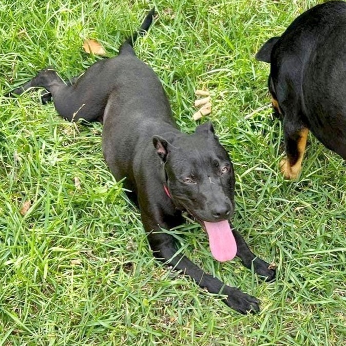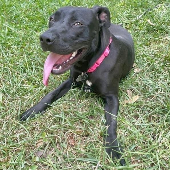 Chloe Chloe is our beautiful and sweet pittie mix! She is great with dogs and LOVES children. Chloe is housebroken and crate trained. Chloes foster mom says that she is extremely lovable and very active. She would do great in a family who enjoys long walks, runs, or hikes and new adventures! Chloe loves to play tug-of-war and enjoys enrichment toys that work her brain! She is a very smart pup! She knows basic commands such as sit and down! She was lucky enough to have a 30 minute training session with a dog trainer. Chloe settles nicely when she is ready for a nap - she even brings herself to her crate voluntarily to snooze! Chloe is still working on her leash training. She has not quite gained her confidence on a walk, sometimes resulting in reactivity. If you have any further questions about Chloe, please email SaintMuttsRescue@gmail.com To apply to adopt Chloe, complete an adoption application using the link below: https://form.jotform.com/210515484620146