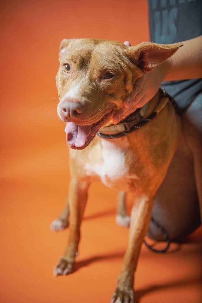 Nyabi is looking for a big kind of love. She is a 2 year old, 57 lbs pittie Mix. She has the prettiest "red head" brindle coat and the most expressive ears. Nya is hilarious and a little extra. She is such a ham. The basics are ?? covered- sit, crate trained, potty trained, and walks well on a leash. This sweet girl loves a good romp with her dog friends. She would also be happy as a solo pup who gets to play with other dogs on occasions (like daycare). Nyabi has a BIG personality and soaks up being the queen of your attention. Obviously she loves and looks adorable all dressed up. While she is active and playful, she is also super cuddly and affectionate. This playful cuddle bug would prefer older kids on a regular basis. Feeding should be done separate to other pets/kids. Nyabi is an amazing pup who needs someone to take a chance on her. She will fill your life with laughter and so much love. Nyabi is available for adoption through Border Tails Rescue. Her adoption fee is $300. She is fully vetted and ready to go home!!