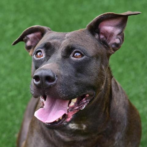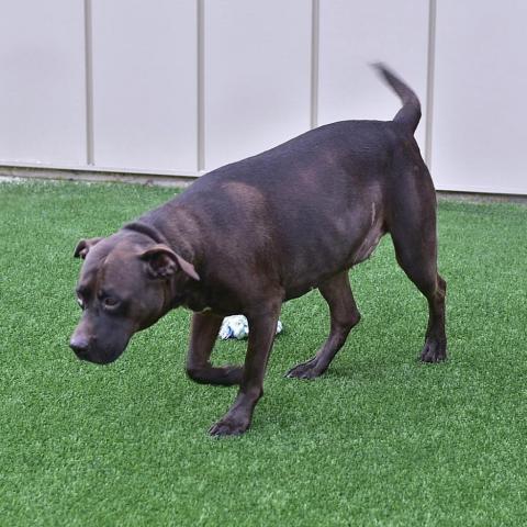 What miss Layla may lack in sophistication (she reportedly couched up a loogie and thoroughly enjoyed eating it), she makes up for it by having an excellent temperament! She loves to roll around and scratch her back, receive belly rubs, and goes nuts for toys (She retrieves like a pro)! At this point, she may like her toys even more than her food! She does wonderful while getting a bath and is quite gentle despite her plump size. Shes a brilliant dog, already knowing how to "sit", "lay", and "shake"! Were sure you could easily have a little circus performer on your hands in no time! If youre looking for a true best friend, Layla here is your gal! *Edit to add:* Occasionally the dogs in our care are able to participate in adoption events at other locations. While they may not get adopted at these outings, it is still a GREAT way for us to learn more about each dog outside of the shelter setting. This dog in particular recently took part in our "clear the shelters" event at Petsmart. They were able to meet new dogs & people alike, all while being in a completely new environment. That can be a lot for any dog to handle, but this dog, Layla, did AMAZING. She was incredibly well-behaved in the store and really was just wanting to "hang out" with the people. She let kids pet all over him and seemed to really enjoy the affection! We believe she would do great in any home, as she has a wonderful temperament and behavior.