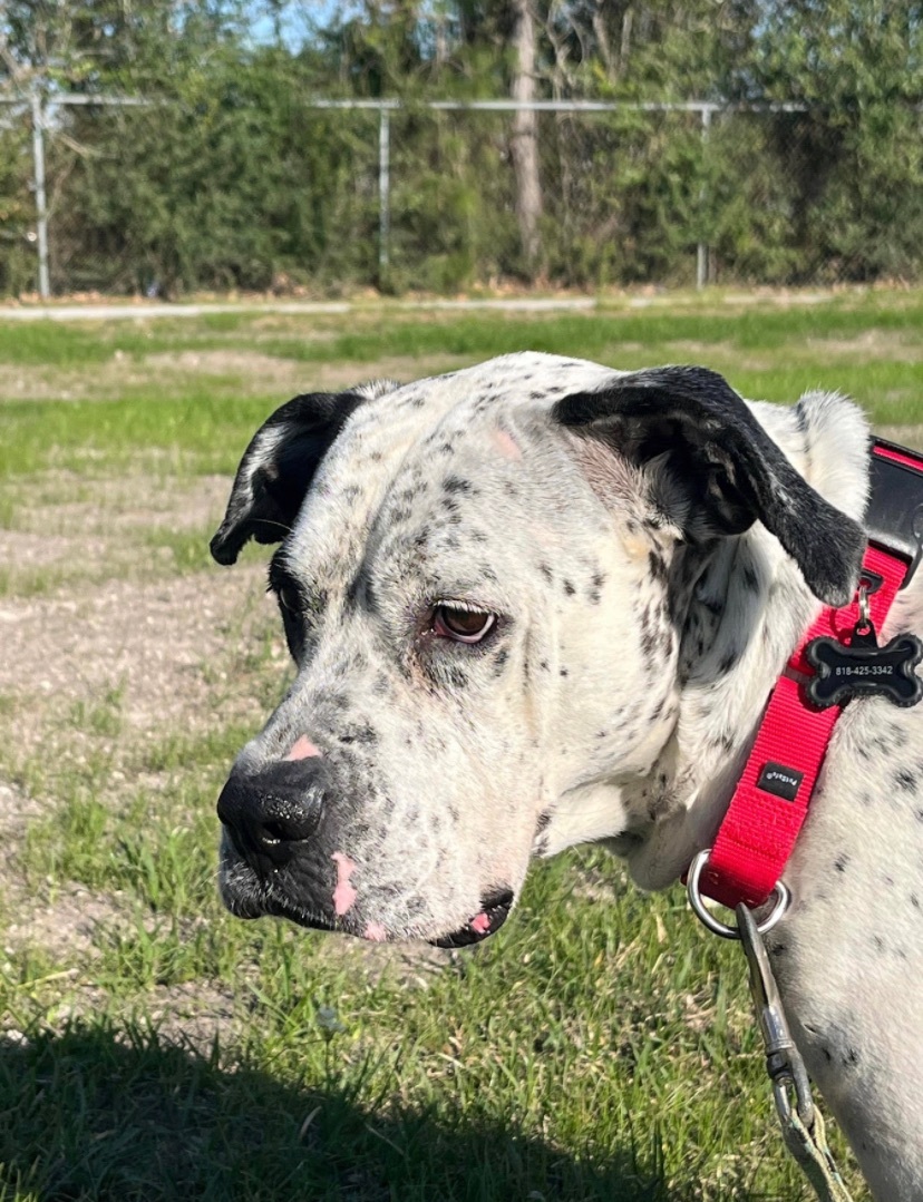 She has a tendency to be reactive on the leash towards dogs and would do best with an experienced handler who can work on this. She also gets excited when anything rolls by like bikes, scooters, and skateboards. So being comfortable with redirection is important. Layla needs to be socialized with other dogs carefully.  She loves some dogs that she meets and not so much others. She would do well in a single dog family.