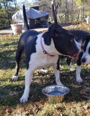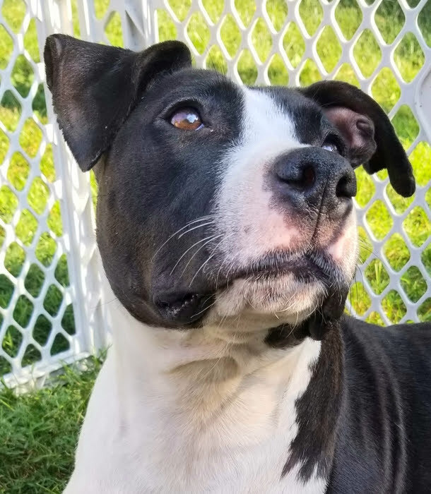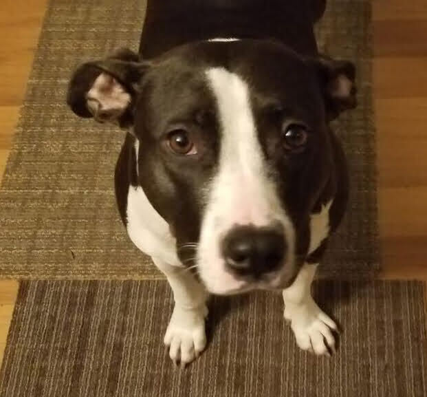 Age: 3 years. Weight: 55 pounds. Reported: Good with dogs, and older children. No cats for Penny. PENNY adores people of all ages, although with her energy level she may accidentally knock little ones over. She very much enjoys the company of other dogs but will need a slow introduction as she is exuberant with a forward style of play, which may leave a confused impression on other dogs. She has the energy of a puppy and would like to have a fur sibling in her new home so she can romp and play and enjoy being a family dog. PENNY continues to do well on lead but can pull when she sees someone or something she wants to greet, so we are continuing to work in that area. PENNY has proven to be an escape artist, so a fenced-in yard is needed for her. The most special things that PENNY will bring to you are her sweet personality and her super-cuddle skills. She is an absolute love, and you will be so glad you invited her into your heart and home. You can apply to adopt PENNY at https://www.mostlymuttz.org/adoption-application/.