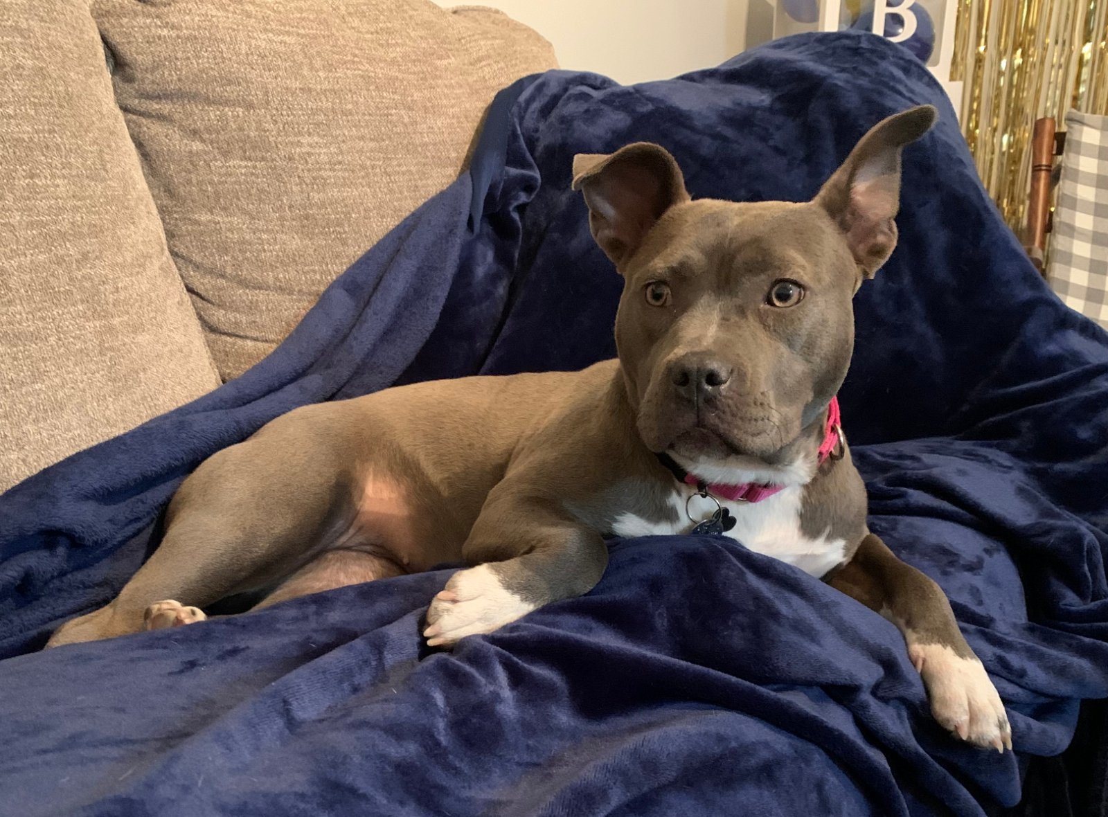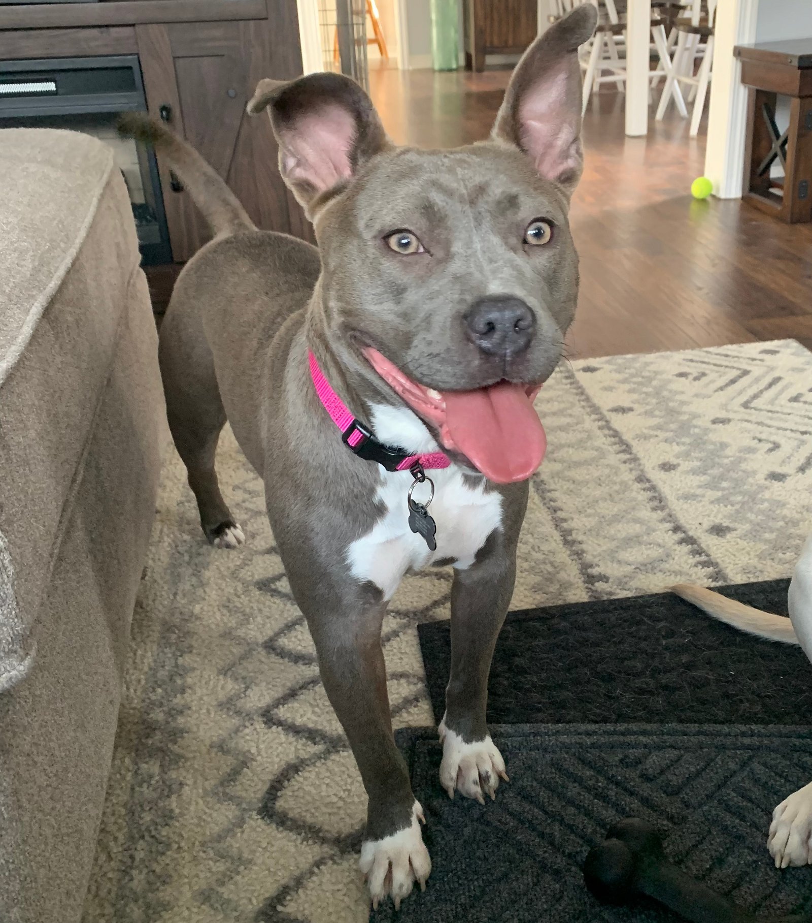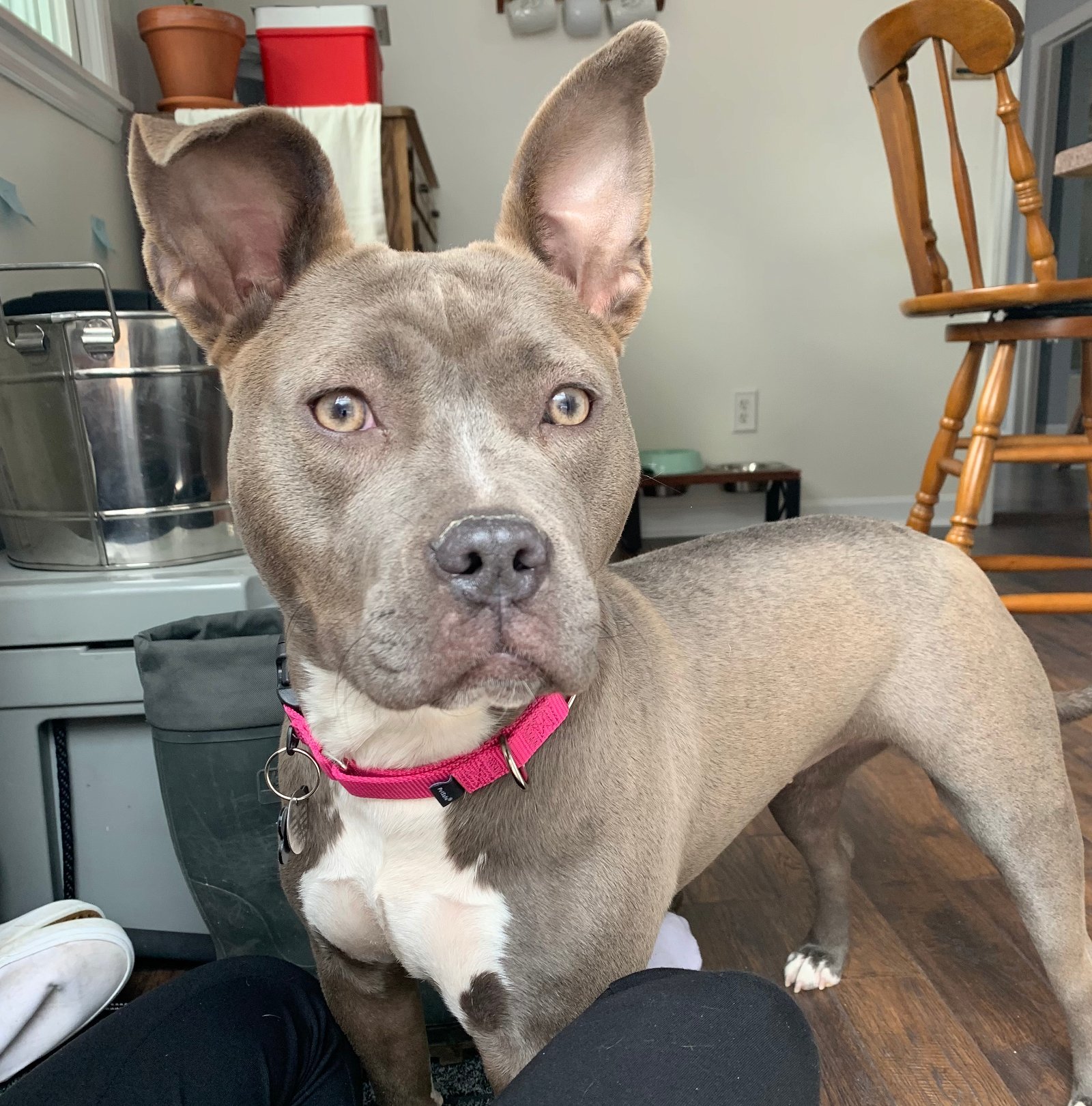 Ridge is a sweet girl, shes just about a year old and 40 lbs. Ridge is looking for a home to call her own. This playful, sweet nugget is a very happy girl with a tail that wags non stop! Ridge loves cuddling, belly rubs, bones, and playing with other dogs. She is still young though and undersocialized, so she can play a little hard sometimes, getting over stimulated and not knowing when to stop. She is currently fostered with a dog and if paired with another dog in the adoptive home, it would need to be one who can keep up with her energy, but also appropriately let her know when the games are over. She needs slow introductions to other dogs as she can be reactive and come on a little strong. Because of this, owners with dog experience would be best. Ridge is such as smart sweet girl, she responded well to structure and training, which can help her be the perfect furry companion. According to her foster mom, Ridge loves sleeping in each morning and will not get out of bed without a certain level of coaxing. She is house trained and crate trained, but can be a bit strong on leash. Ridge has never lived with cats, but her foster down south believed that she would most likely chase them, based on her reactions to other small animals on walks. She has also never lived with children, and because of her energy and behaviors, we would be looking for homes without littler ones, instead closer to teenaged years. Ridge would be an amazing companion to any family! If youd like to meet Ridge, please fill out an application today at www.ehrdogs.org!