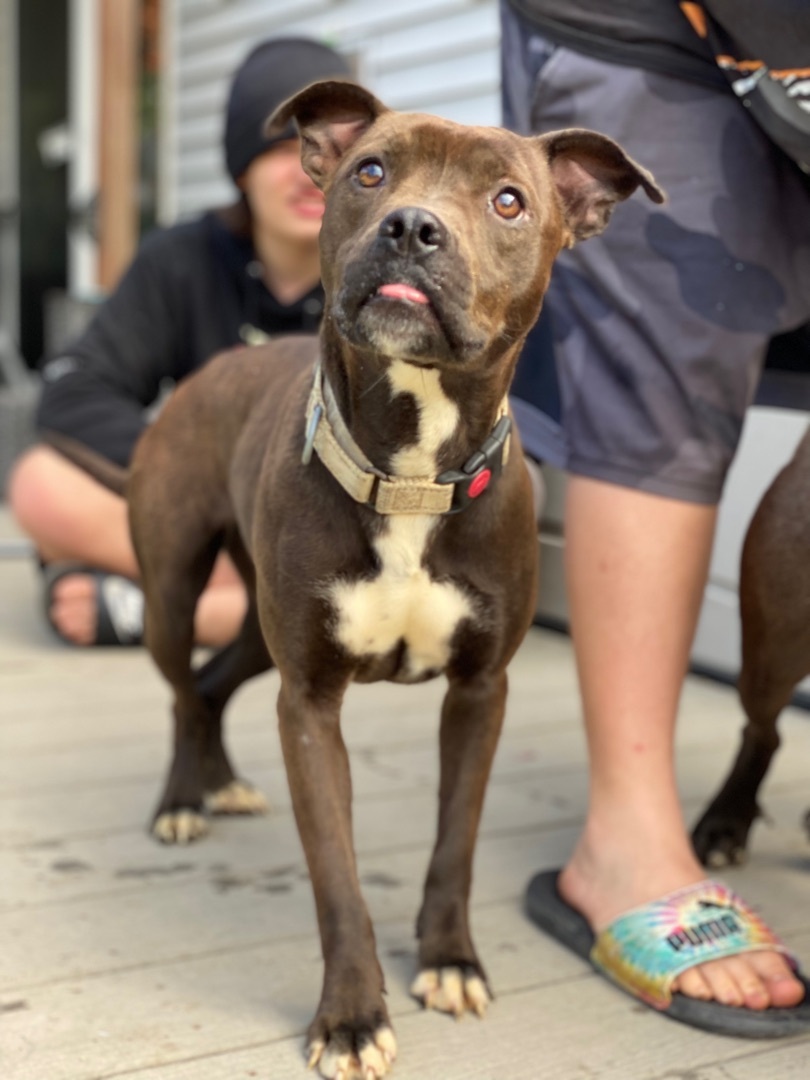 Asia is about 1 year old. SHe is pittie mix. still working on potty training and leash training. She is good with some dogs. They are fun and love to play fetch and tug a war or just hangout right at your feet with their person. No small children under 10 years. Asia is a pocket pit, she weighs around 35 pounds. She is a little shy at first, but a total sweet heart! Due to the number of requests that we receive on our puppies and dogs, please be advised that all adoption applications are processed in the order received. Once we send you an application, your place in line does not get reserved until your application is returned to us. Please fill out our application to get started and to set up a meet and greet to get this lovely soul adopted! https://lp4rrockies.wufoo.com/forms/qa0qut21foyx3u/