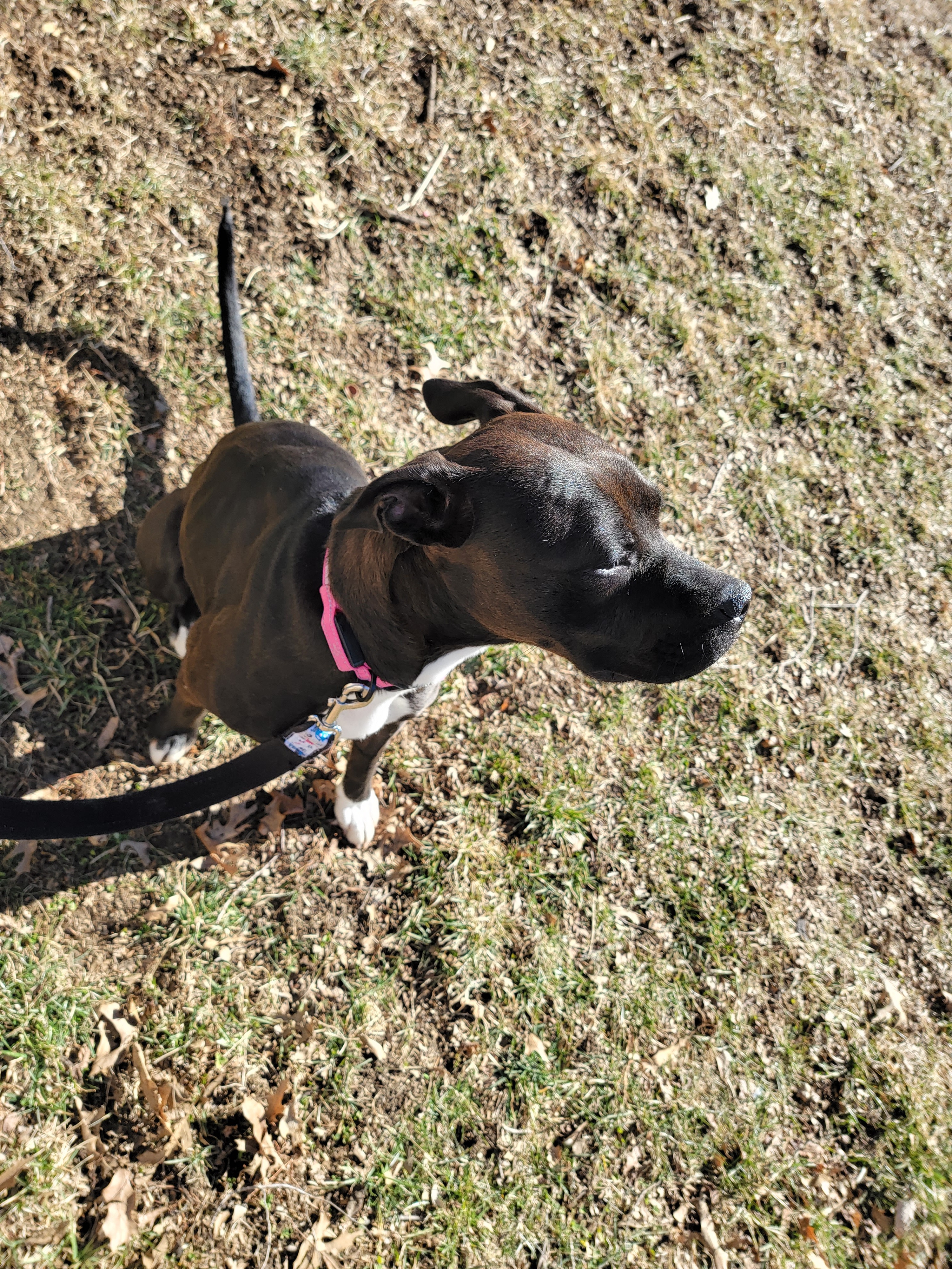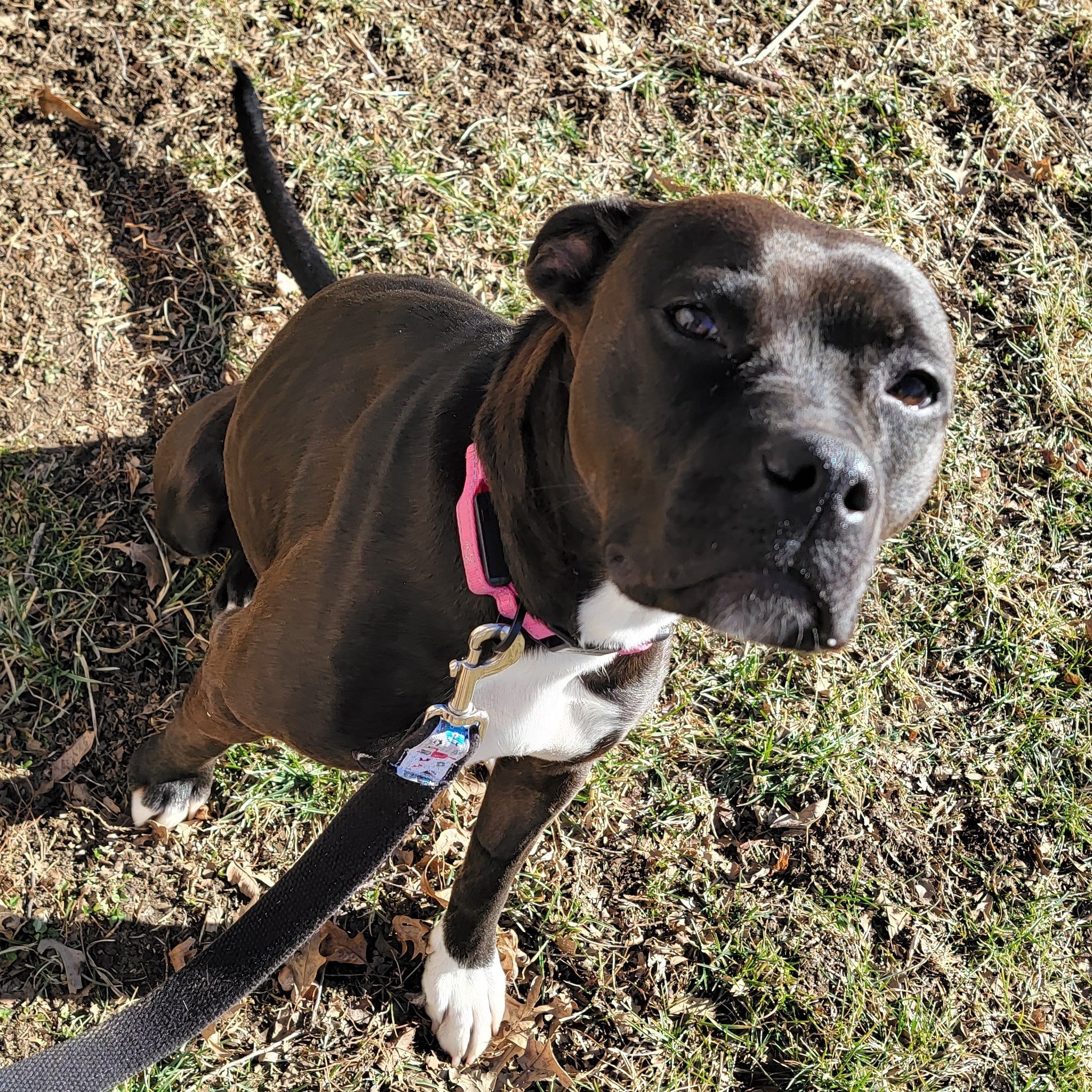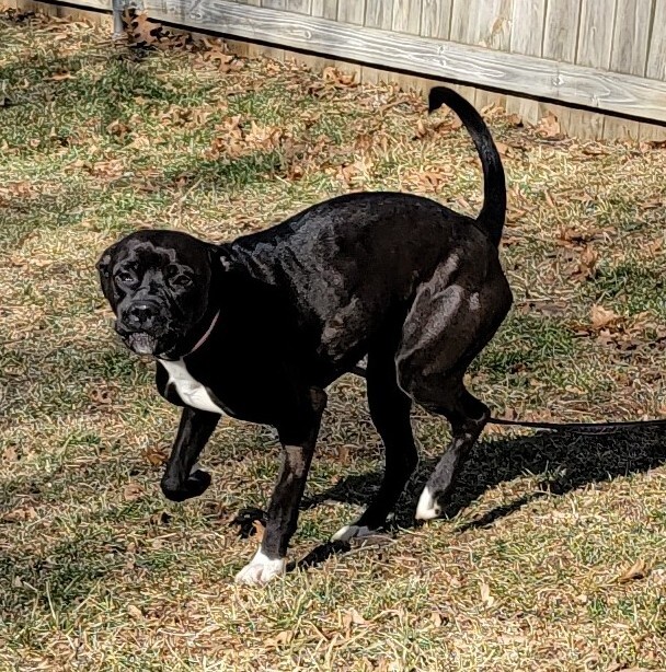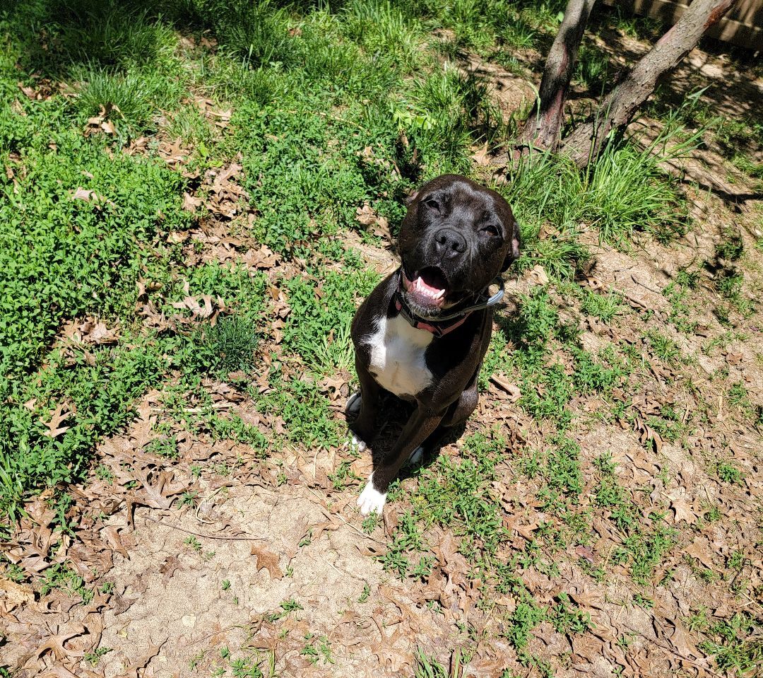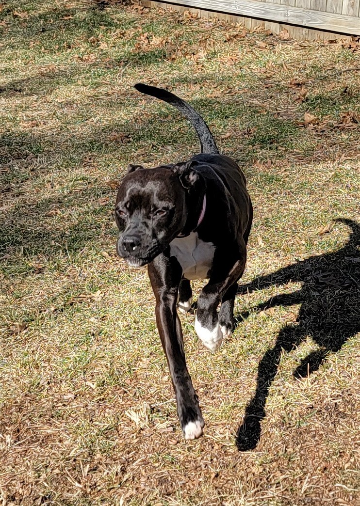 June is young and energetic. She is afraid at first and acts tough but is a marshmallow. She wants to be loved so much but does not always go about getting it in the best way. In the few months before she came to CATS she lived with a young elementary child and an older child, junior high age, that would take her on walks. She does pull some so will need more work. A gentle lead harness works well with her. She knows sit, and wait. She is spayed, vaccinated, microchipped, hw negative and has been on sentinel spectrum.