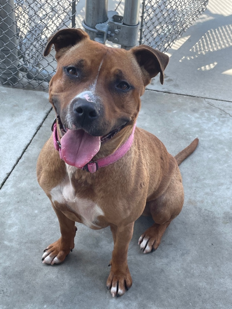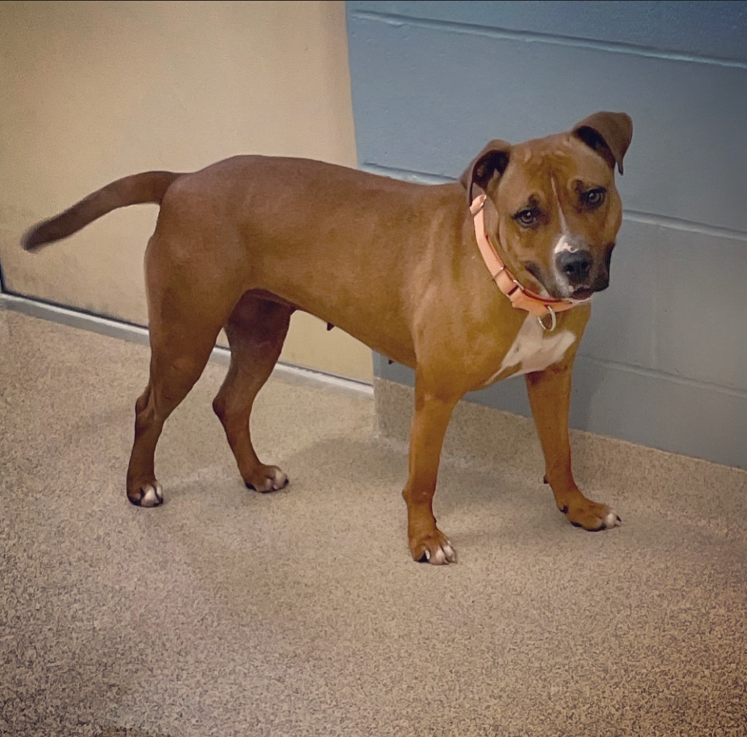 Natasha has been with us since March 25th. She had been rehomed on Facebook by her previous owner and her current owner turned her into us as a stray. We had seen the posts and already knew this dog was hers. Natasha is a young adult pit bull mix. She is dog friendly. No cats!!! Kids unknown. She listens well to us here so far. She seems to be a good girl. We don’t underestimate how time and stress here at the pound can change that though. This is another reason to SPAY AND NEUTER. Dogs are rehomed over and over.…to friends and strangers who may not be the right fit for the dog or can put the dog in inappropriate situations that can set them up to fail. Natasha was put in a home with cats and she is not cat friendly. If you are interested in meeting her please email ssabol@mahoningcountyoh.gov to request an application. Once approved we will call you to set up a meet and greet.