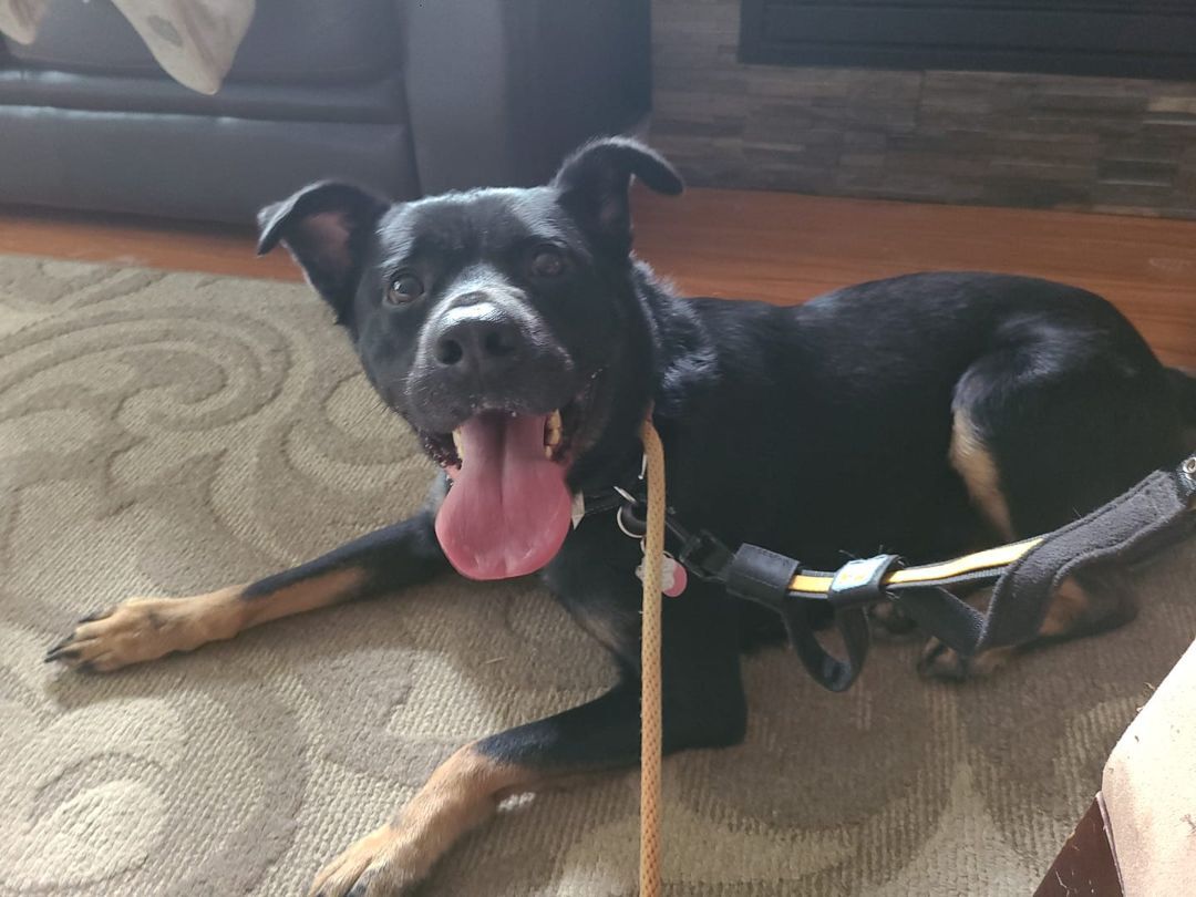 Meet Kate Age: 2 + years Breed: Northern Special – Unknown – Rottweiler/German Shepherd mix Is your dog good with other dogs: Kate is very dog selective she seems to be better with other calm females. She is in a foster home with 3 other dogs and does better with the female only around. Slow introductions are a must with Kate and other dogs. Kate gives off wonderful body language about her dislikes before she growls. She will vocalize her discomfort. Is your dog good with cats: yes, dog savvy cats! Is your dog good with kids: she is great with the 2 kids in her foster home and listens to their directions. 8 year old is able to walk Kate with parent supervision Is your dog house trained: Yes Is your dog crate trained: Yes, Kate does great in her crate she goes into it no problem and doesn’t bark or cry. Does your dog have any special needs or medical conditions? No nothing major, she should put on a few more pounds but that can be solved easily with a strict feeding schedule. Does your dog have any or display any aggression (toys, food, people, leash reactivity: Kate hasn’t shown any leash reactivity in her current foster home. She will definitely need a calm, confident owner Is your dog playful: She is very playful when it’s just her and her foster mom Does your dog like to snuggle: she loves a good snuggle and getting head & belly rubs Does your dog know basic commands: Kate knows sit, stay, lay down and come. Does your dog know any special tricks: 8 year old in the house has been working on Katess smell skills for picking a hand that has the treat in it. He has also taught her how to spin Does your dog like to go on walks: Kate loves going on walks, especially when she knows her foster family is taking her down to the river! She does pull while walking but is making tremendous progress on her leash manners. Does your dog have any fears: No fears but she does need a lot of reassurance while doing new activities Does your dog have any unique traits you have noticed whether in personality or physically: Kate has a very funny personality. She’s very silly in the way she plays and attempts to get your attention. Kate will remind you if you haven’t given her enough pets by pawing at you. She also has this beautiful white spot on the back of her neck. What are the 3 first words that come to mind when you think of your dog: Loyal, funny, insecure In a short paragraph Please provide any other details or a brief overview of your foster dog Kate originally came to us back in February 2022 and was surrendered to the rescue due to no fault of her own. Kate needs a confident and calm owner who is able to continue with her leash work. She is very food motivated and easily learns a new trick. She has learned the routine in the foster home in less than a week and seems to thrive on keeping a strict schedule. Kate gets crated during the day when foster family is away and at night to sleep. She knows that she gets to go for a walk as soon as foster mom wakes up or gets home from work and will go straight to the door and wait.