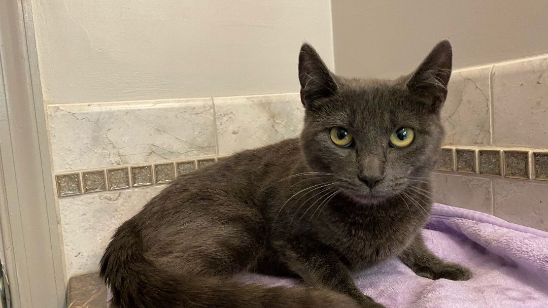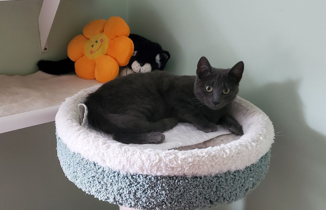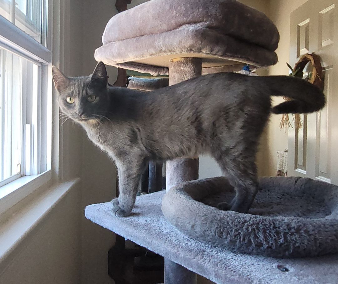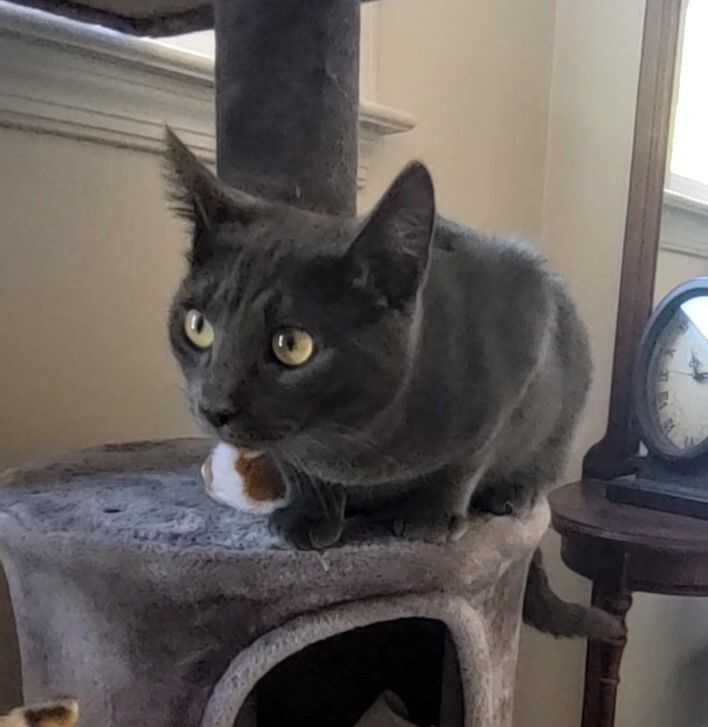 LILY is a 6 month old baby Russian Blue mix who is spayed, tested, up to date on shots, and littertrained. She is so sweet and loves people and other kitties. She is a total cutie pie and we hope you will not be able to resist her wonderful personality and adorableness.