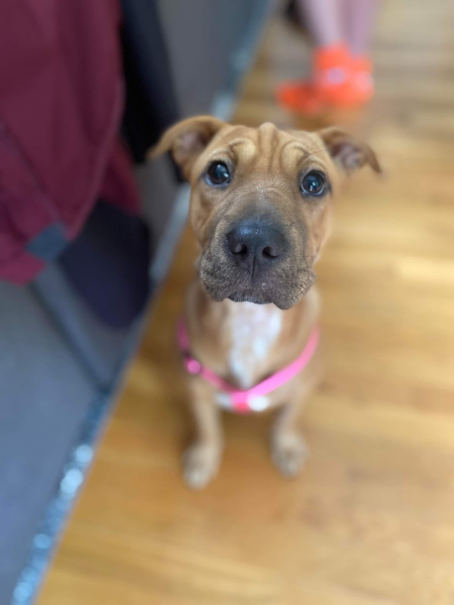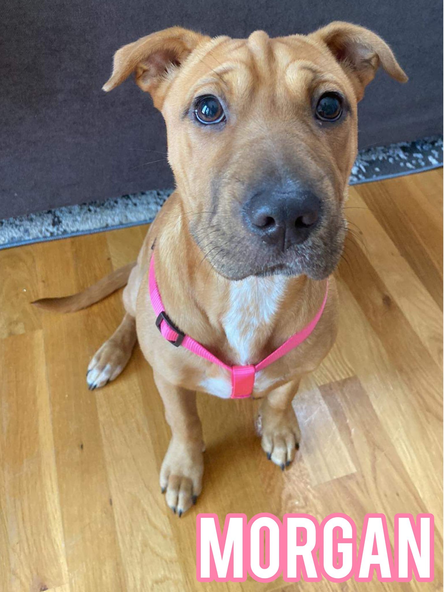 Morgan is a COURTESY POST and not with our rescue. We are cross posting her for another local rescue. Please reach out to RAVE If you are interested in her: https://raveruralanimalvolunteereffort.godaddysites.com/adopt?fbclid=IwAR0VuuIHvUtwUVm49nJ99gVCuBwFl6gySsBg8Ox93ZQ7K8JxJTwgsrwuLkU Morgan Age: 8 months Breed: Shar Pei Mix Weight: Approximately 20lbs Dog Friendly: Yes Cat Friendly: Untested Kid Friendly: Yes Any Noted Aggressions: No Crate Trained: Yes House Trained: Solid foundation and getting better daily. Has only had one accident. Leash Trained: Yes Can be adopted with her foster fursister Maggie!!!